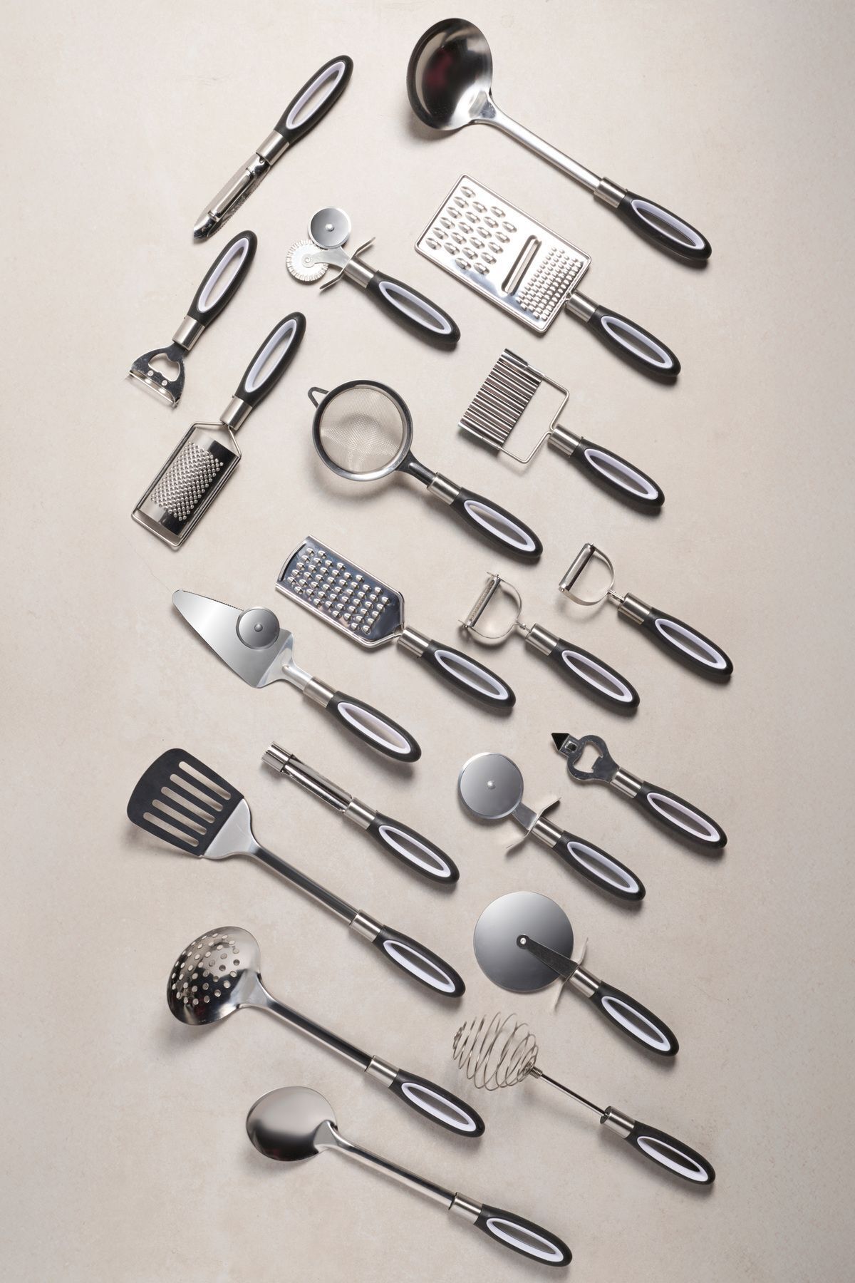 -Set İçeriği: 1x Büyük El Rendesi (22 cm) -1x Çift Başlıklı Rulet (19 cm) -1x Şişe Açacağı (20 cm) -1x El Sarımsak Rendesi (19 cm) -1x Yandan Dönerli Üçgen Spatula (20 cm) -1x Top Çırpıcı (20 cm) -1x Küçük El Rendesi (18 cm) -1x Peynir Kesici Dilimleyici (20 cm) -1x Jülyen Sebze Meyve Soyacağı (20 cm) -1x Peynir Şekillendirici (19 cm) -1x Soyacak ve Açacak (20 cm) -1x Pizza ve Hamur Kesici Rulet (17 cm) -1x Oyacak Uzun Dik Soyucu (20 cm) -1x Çay Süzgeci (21 cm) -1x Pizza Kesici (20 cm) -1x Soyacak (19 cm) -1x Servis Kepçesi (32 cm) -1x Servis Kevgiri (31 cm) -1x Servis Delikli Spatula (34 cm) -1x Servis Kaşığı (33 cm) -Malzeme: Paslanmaz çelik.