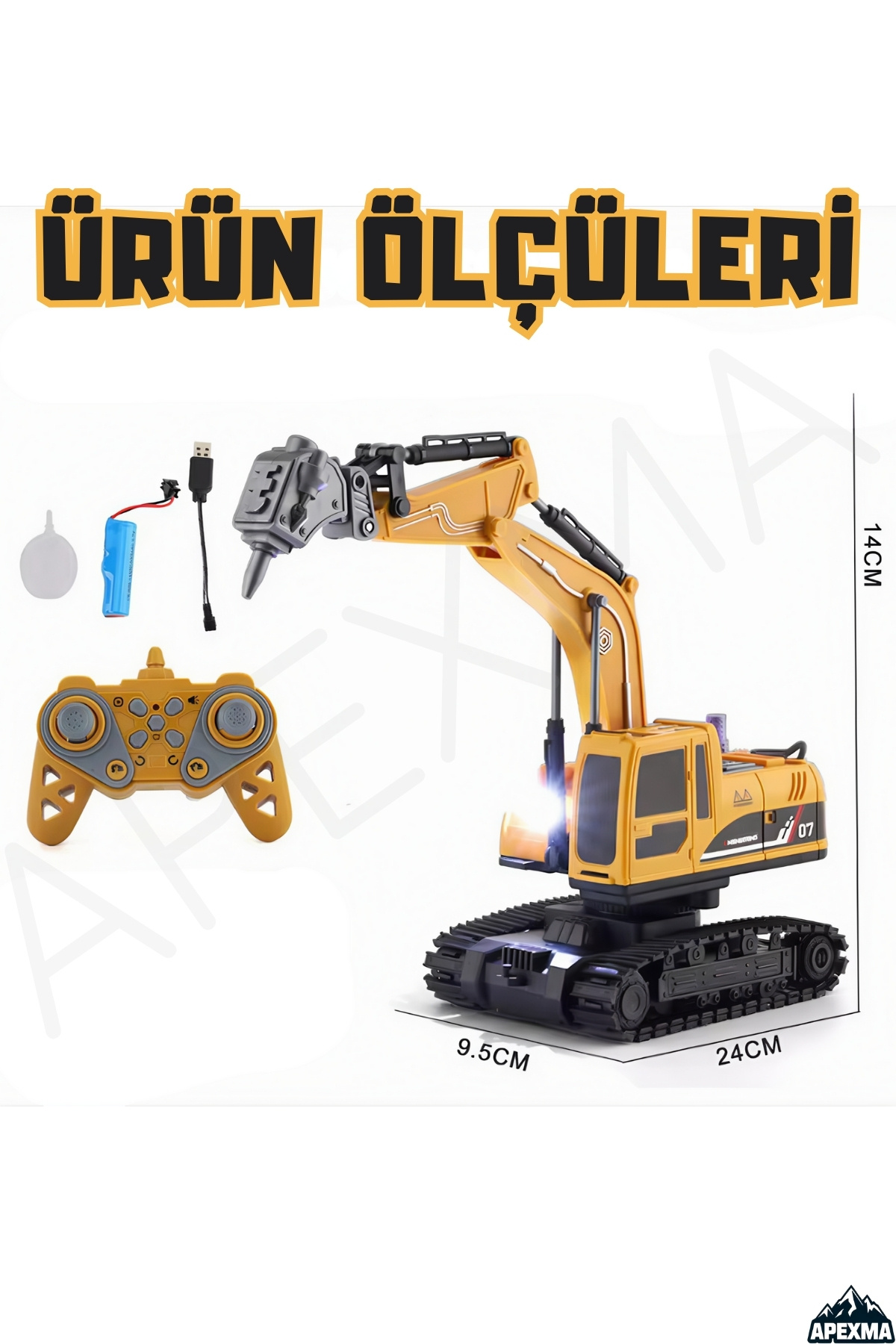 Oyuncak 2.4GHz Uzaktan Kumandalı Şarjlı Işıklı Buhar Atan Paletli Hareketli Kepçeli Rc Ekskavatör