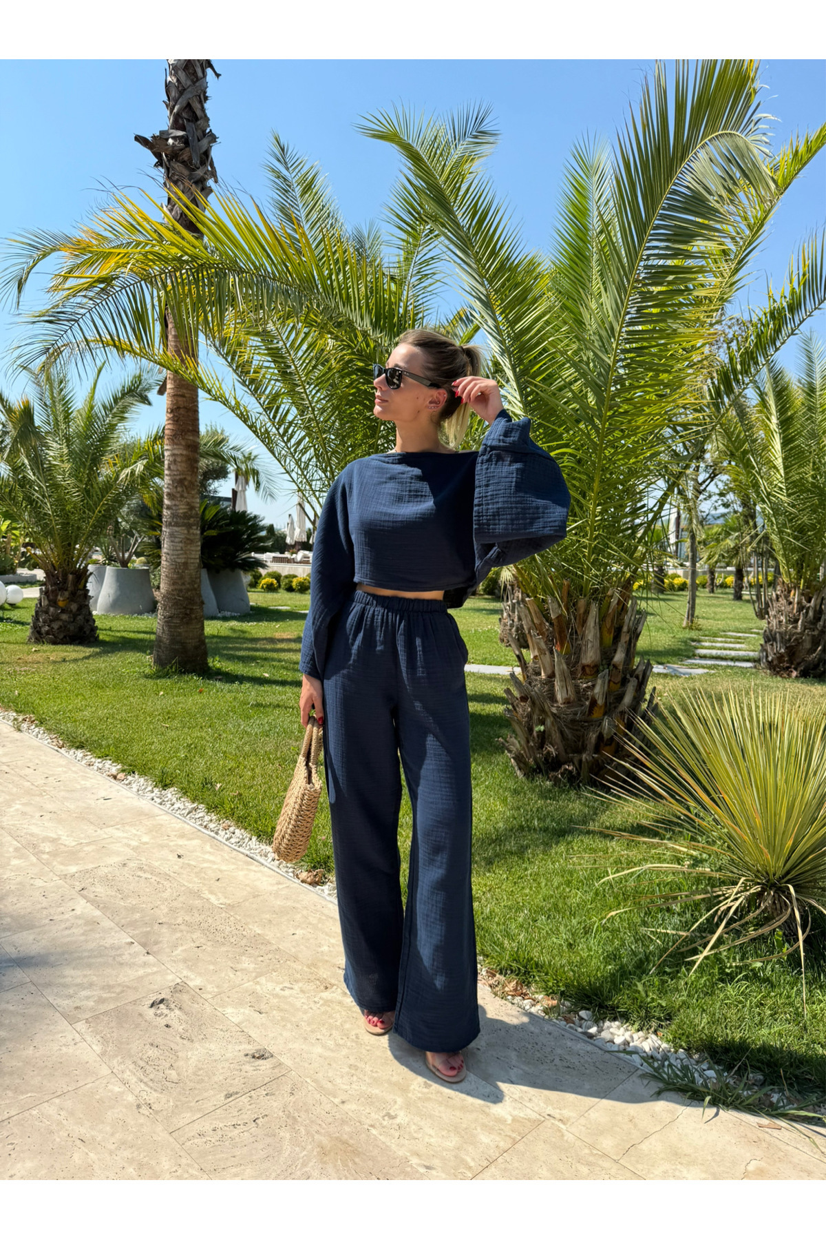 - Bluz-pantolon alt üst takımı olarak tasarlanmış bu set, gardrobunuzda çok yönlülük arayanlara hitap ediyor.