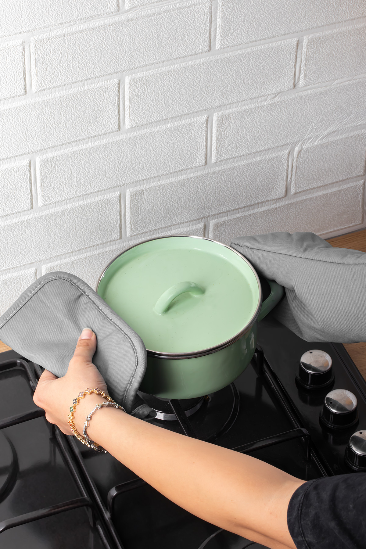 Isıya Dayanıklı Malzeme: Yüksek kaliteli malzemeden üretilen eldiven ve tutacak, ellerinizi sıcaklık kaynaklarından etkili şekilde korur.