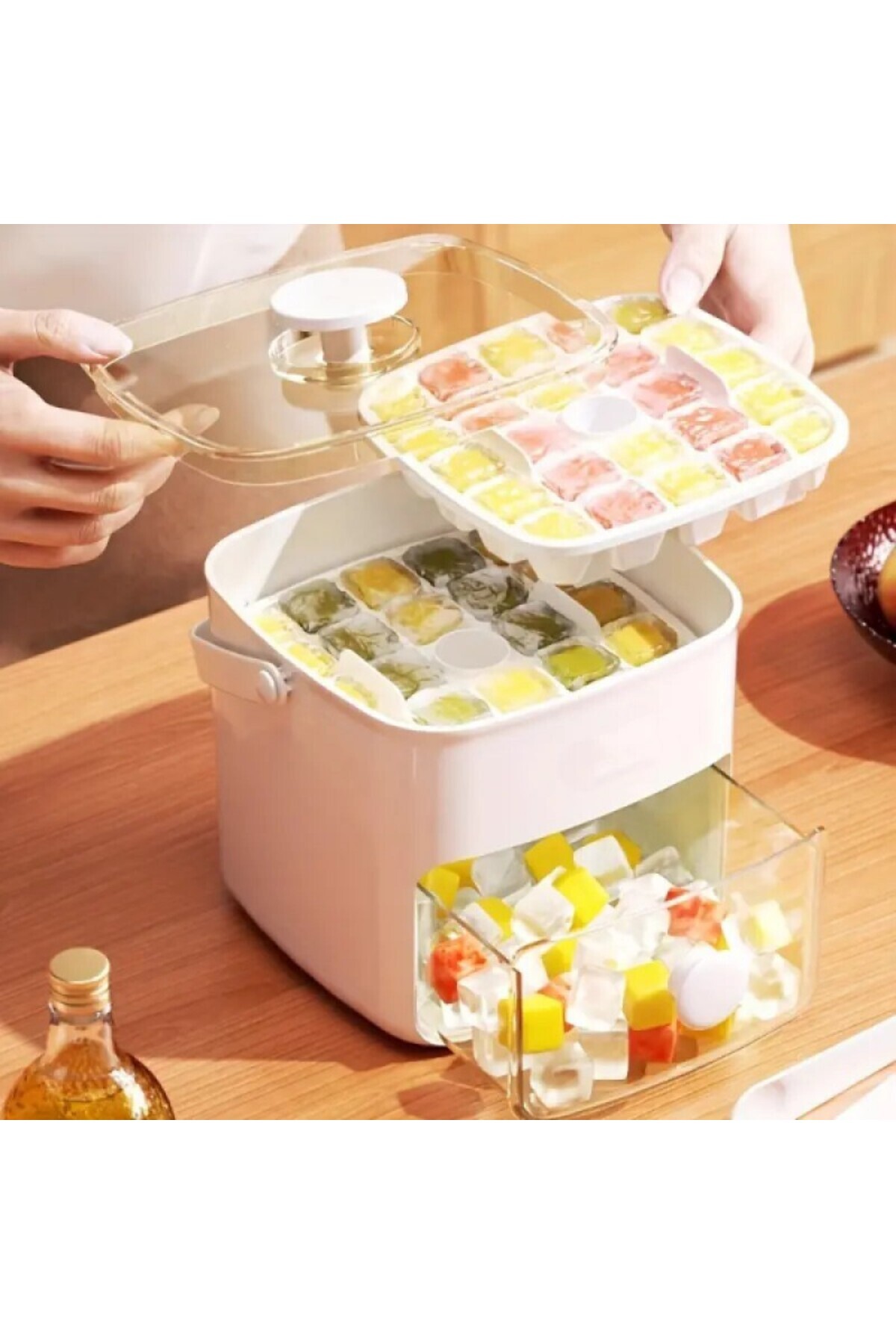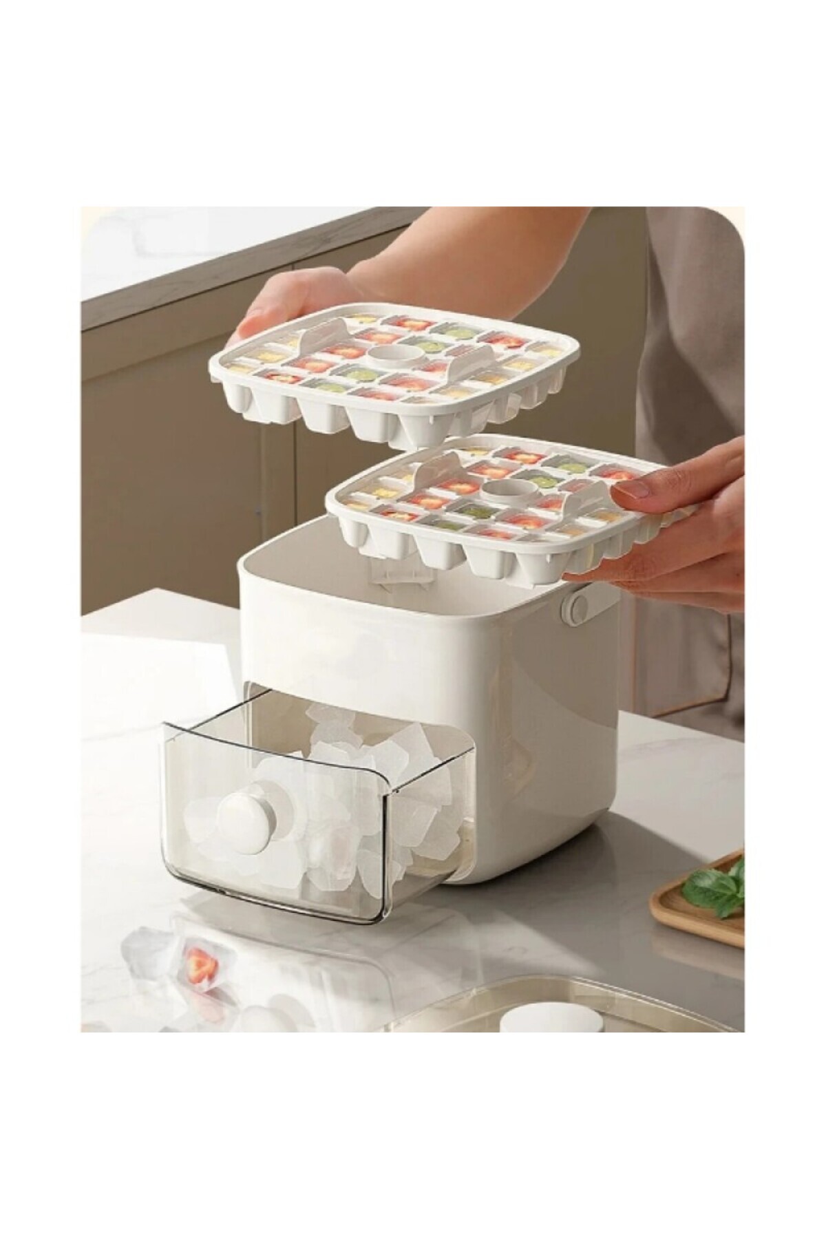 Buz Kalıp Ve Saklama Kutusu 2 Adet Slikon Buz Kalıbı Tepsili Buz Saklama Kabı Çekmeceli Buz Kutusu