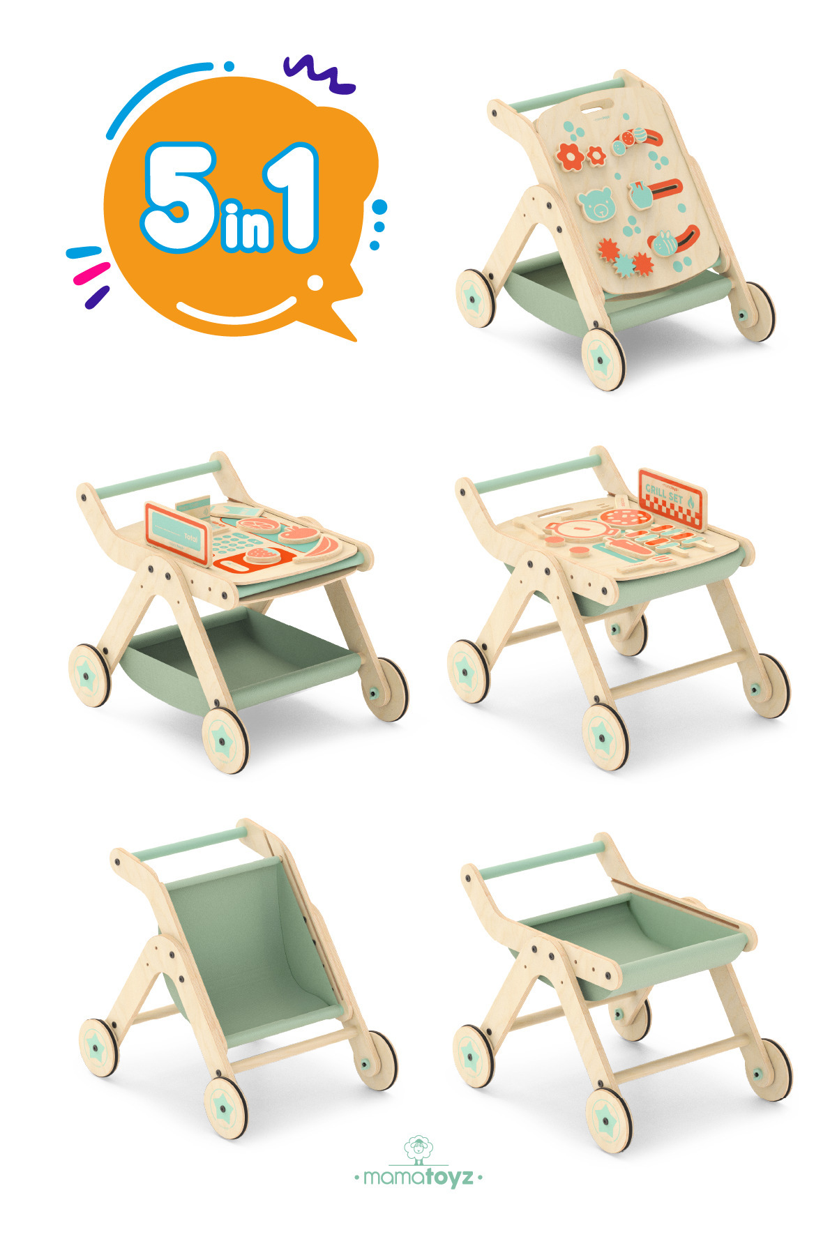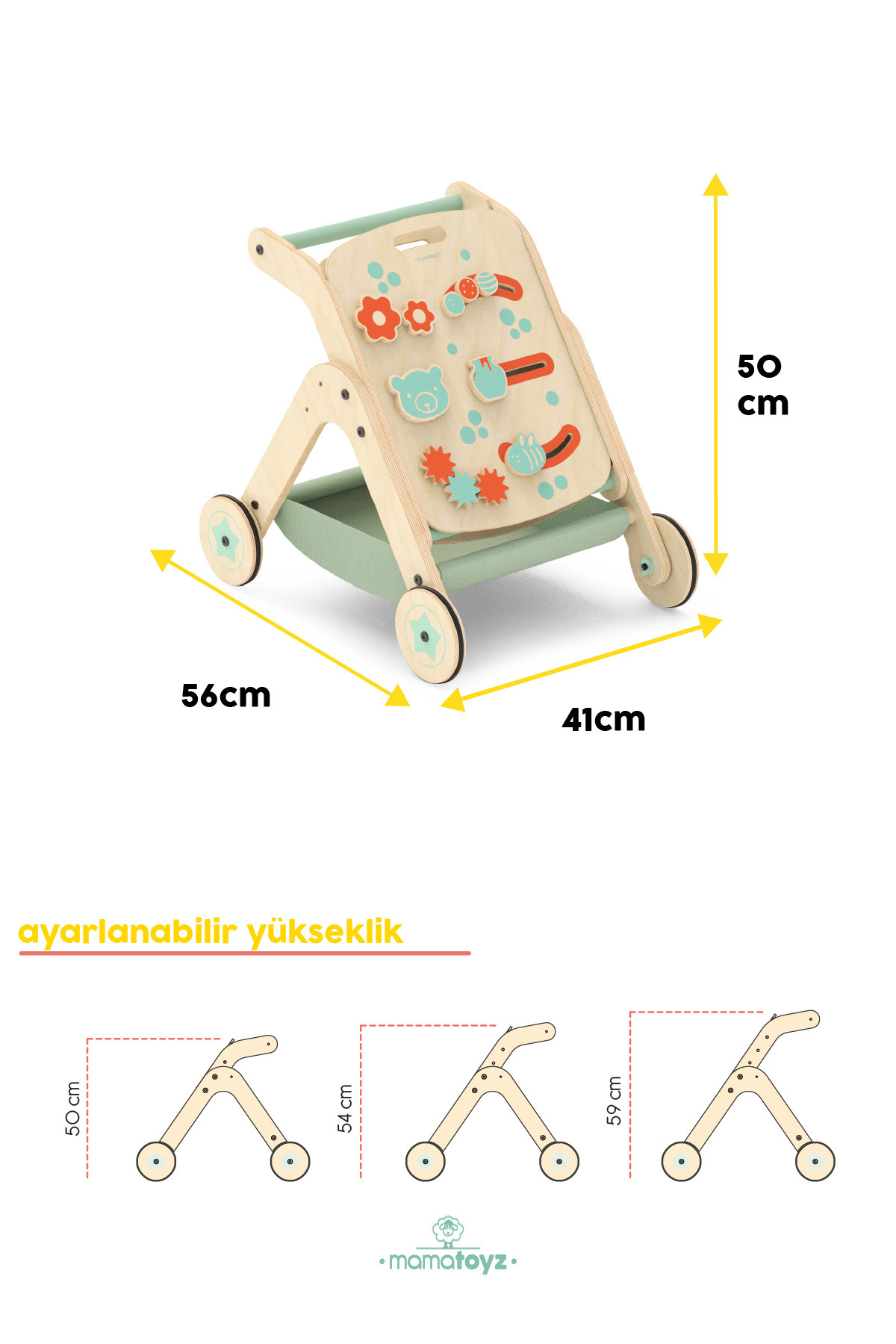Tekerler gerektiğinde kilitlenebilir ve böylece bebek 6.aydan itibaren bu ürüne tutunup ayağa kalkabilir ve üzerindeki oyuncaklar da motor becerilerini geliştirir.