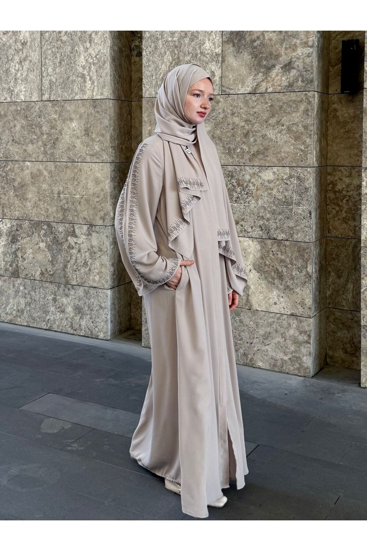 Kumaş: Birinci Kalite İthal Medine İpeği Boy: 145 cm Full Fermuar Ceplidir Şal Hediye Öneri: Umre Ve Özel günlerde Tercih Edilir