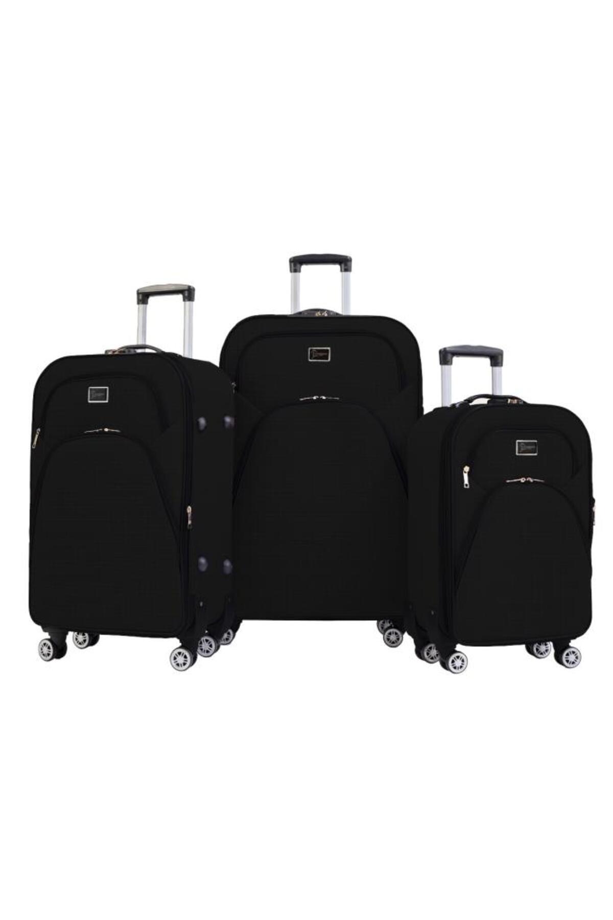 3'lü Valiz Seti 4 Teker Kumaş Valiz Siyah 1081