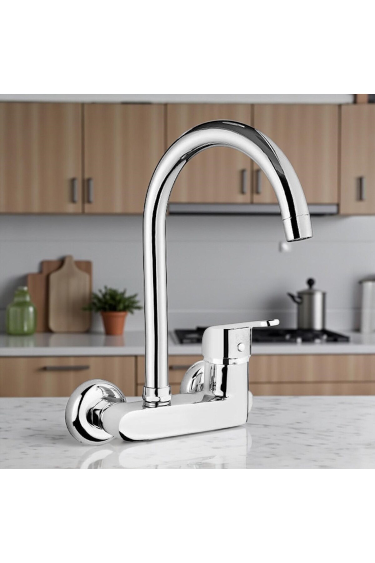 Duvardan Aplike Mutfak Evye Bataryası Aç Kapa Döner Borulu Musluk