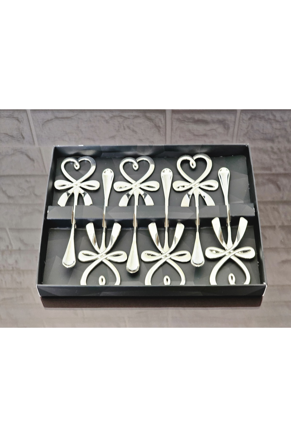 6 Adet Gümüş Fiyonk Desen Kalp Çay-Kupa-Fincan Kaşığı