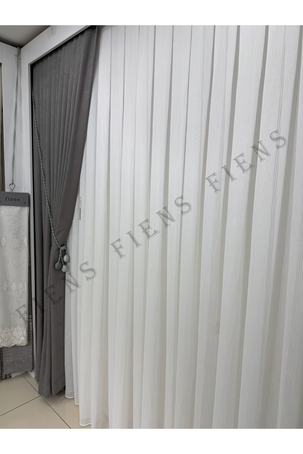 Tok Gramajlı dokusu yumuşaktır karartma sağlamaz 1/3 pileli olup gündüz iç göstermemektedir % 7 dolgunluk verilmiş olup boyhanede işlem sağlanmaktadır İp ayarları özeldir dokusu yumuşaktır .