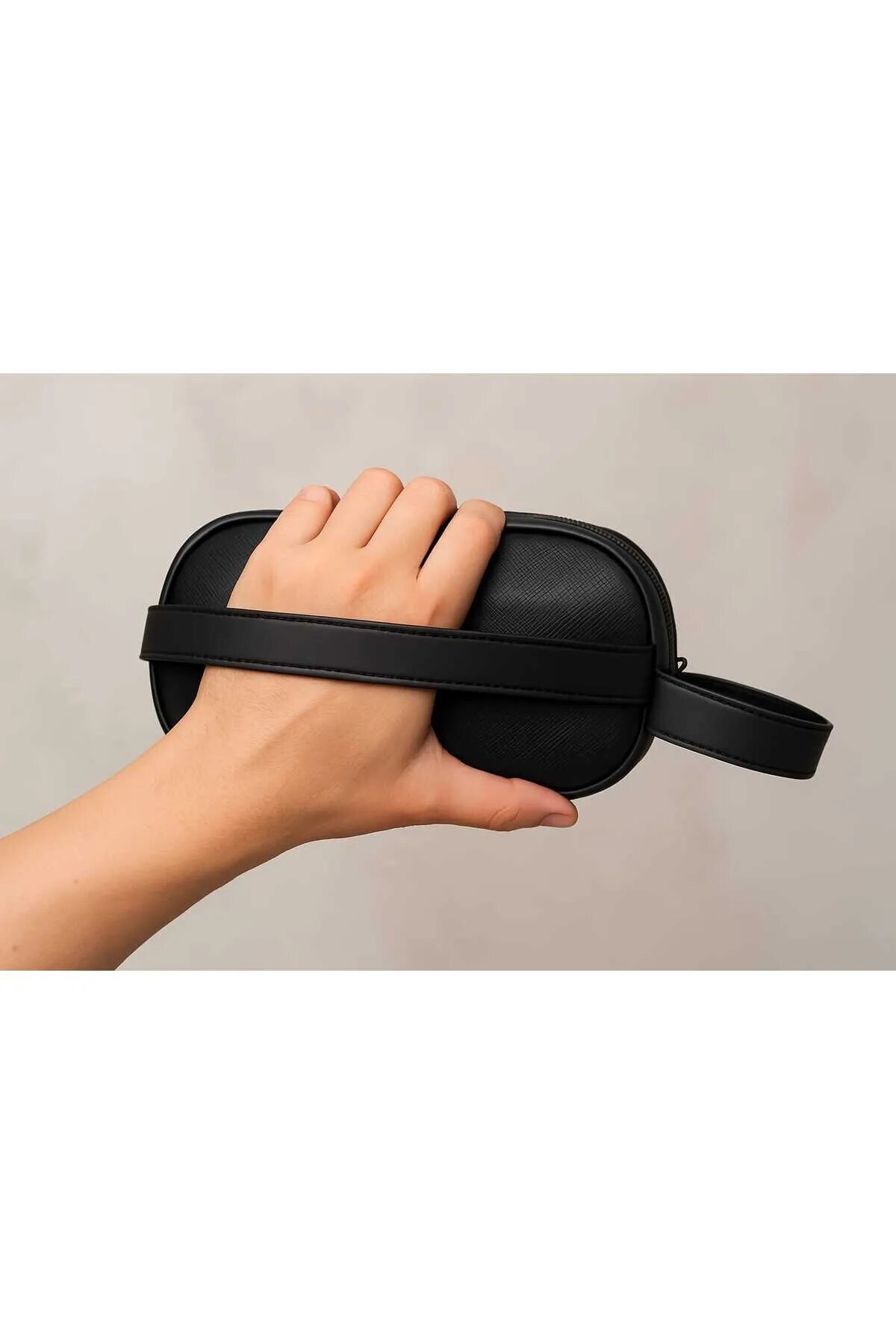 Erkek Deri Portföy Clutch Traş Kozmetik Bakım ve Günlük El Çantası - Siyah