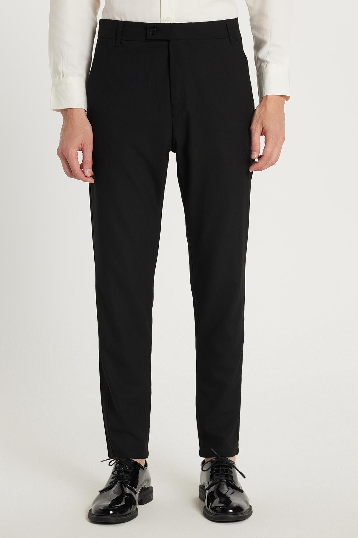 Erkek Slim Fit Dar Kesim Chino Yandan Cepli Pamuklu Siyah Pantolon