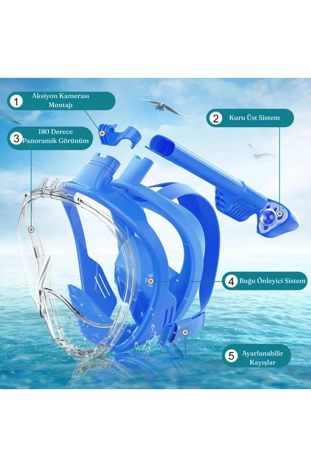 S/M Beden Şnorkel Dalış Maskesi Full Face Tam Deniz Altı Keşif Maskesi