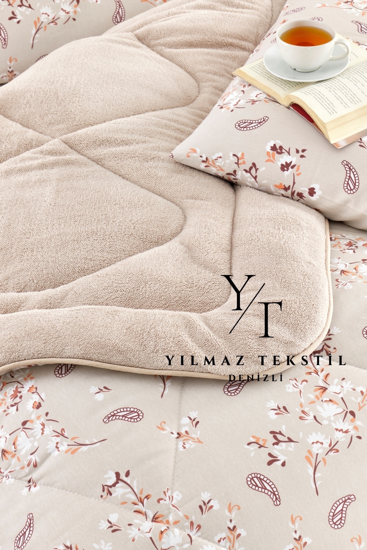 Çift Kişilik Pofuduk Uyku Seti | Lastikli Çarşaflı | Çeyiz Seti | Çeyiz Takımı | Bej Etnik