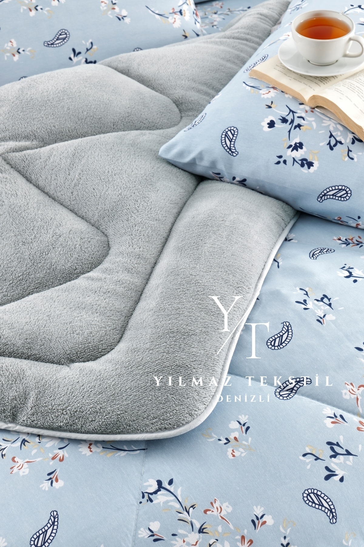Çift Kişilik Pofuduk Uyku Seti | Lastikli Çarşaflı | Çeyiz Seti | Çeyiz Takımı | Mavi Etnik