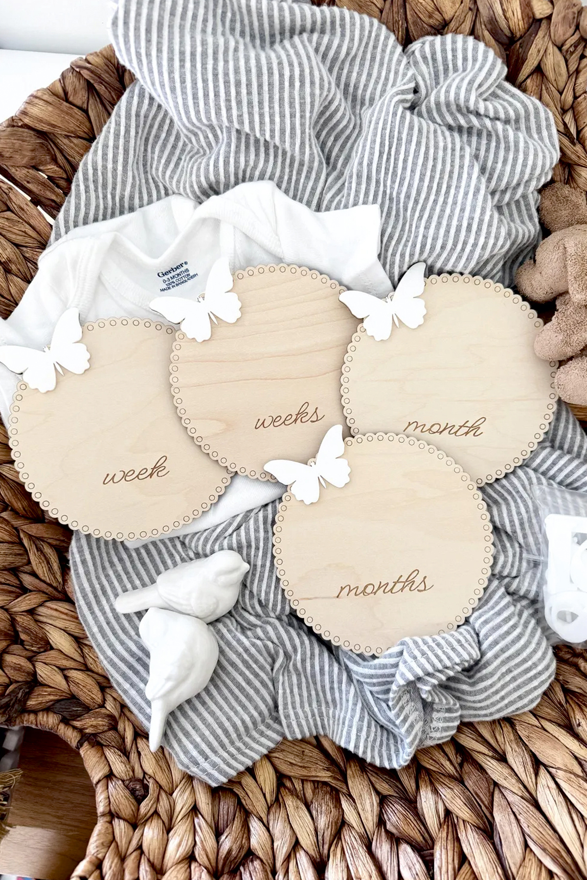 Kelebek Tasarımlı Ahşap Aylık Bebek Fotoğraf Çekim Kartları