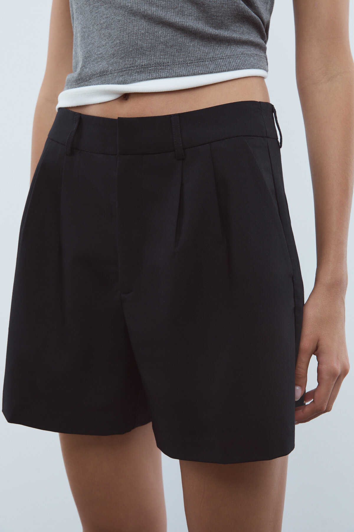 Orta bel ve kemer köprülü şık şort.