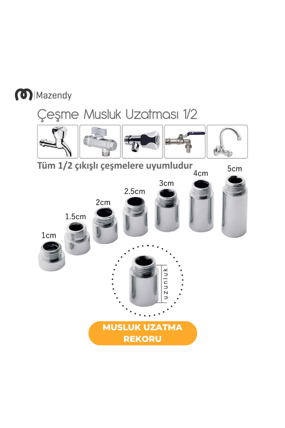 3 cm Musluk Uzatma Aparatı – 26 mm 1/2 Uyumlu Krom Kaplama Pirinç Muslukların kısa kalan uçlarını uzatmak için tasarlanmıştır.