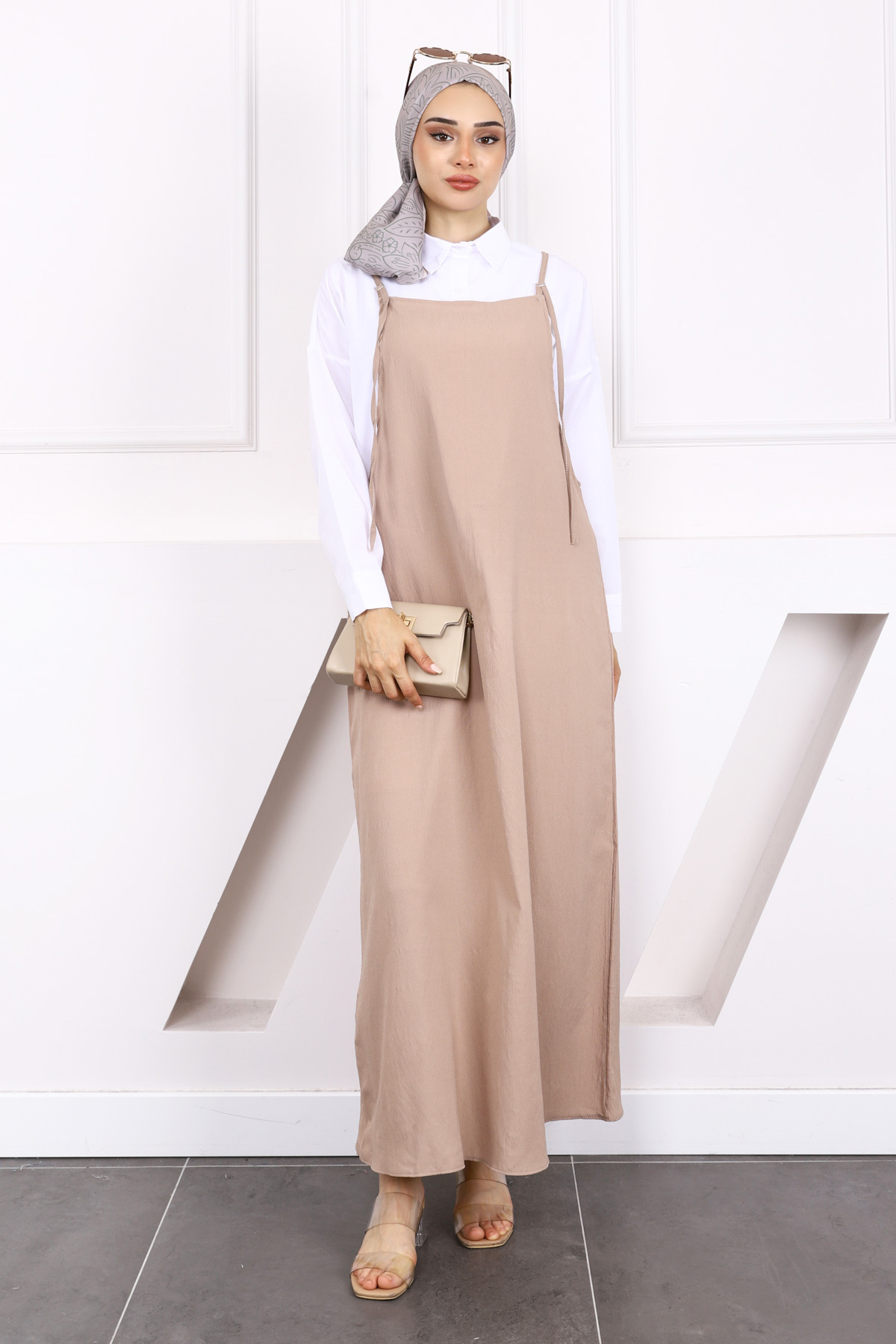 - Bej rengin zarif tonlarıyla tasarlanmış, her mevsime uyum sağlayan keten tunik.