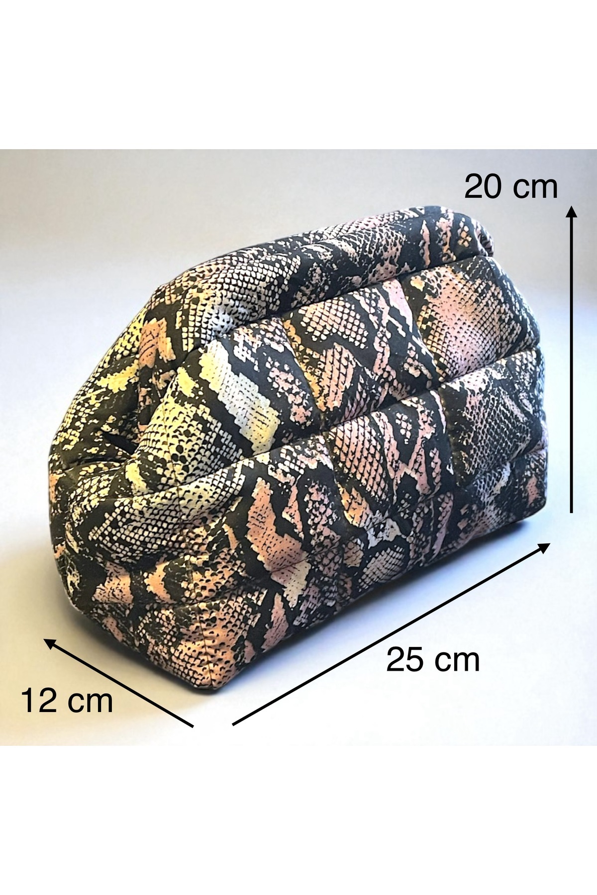 Yılan desenli pamuklu kumaş ile üretilmiştir.