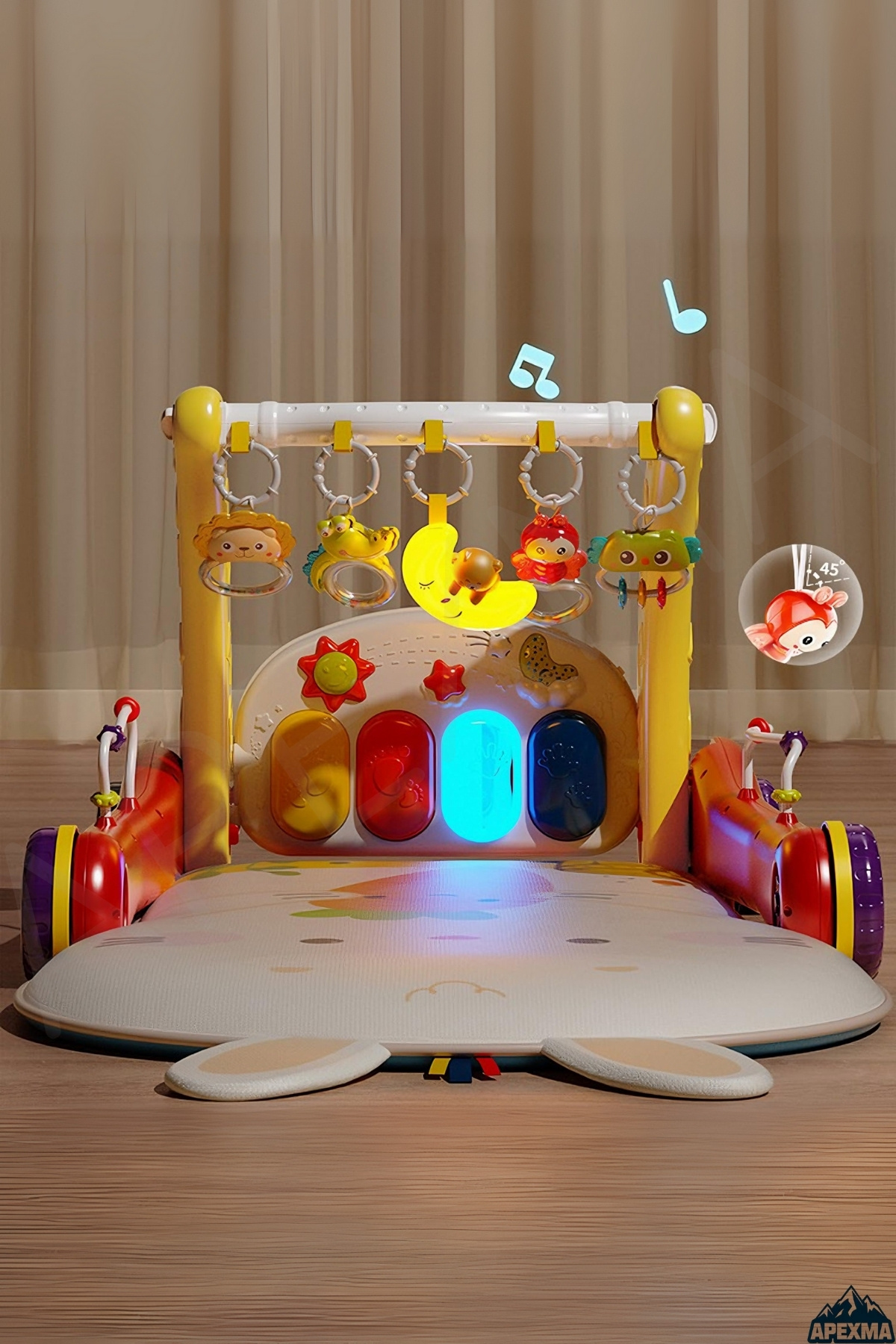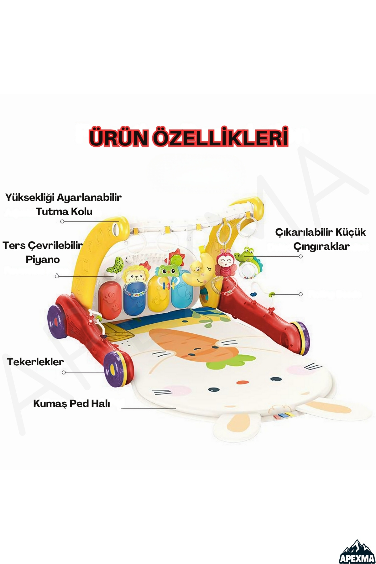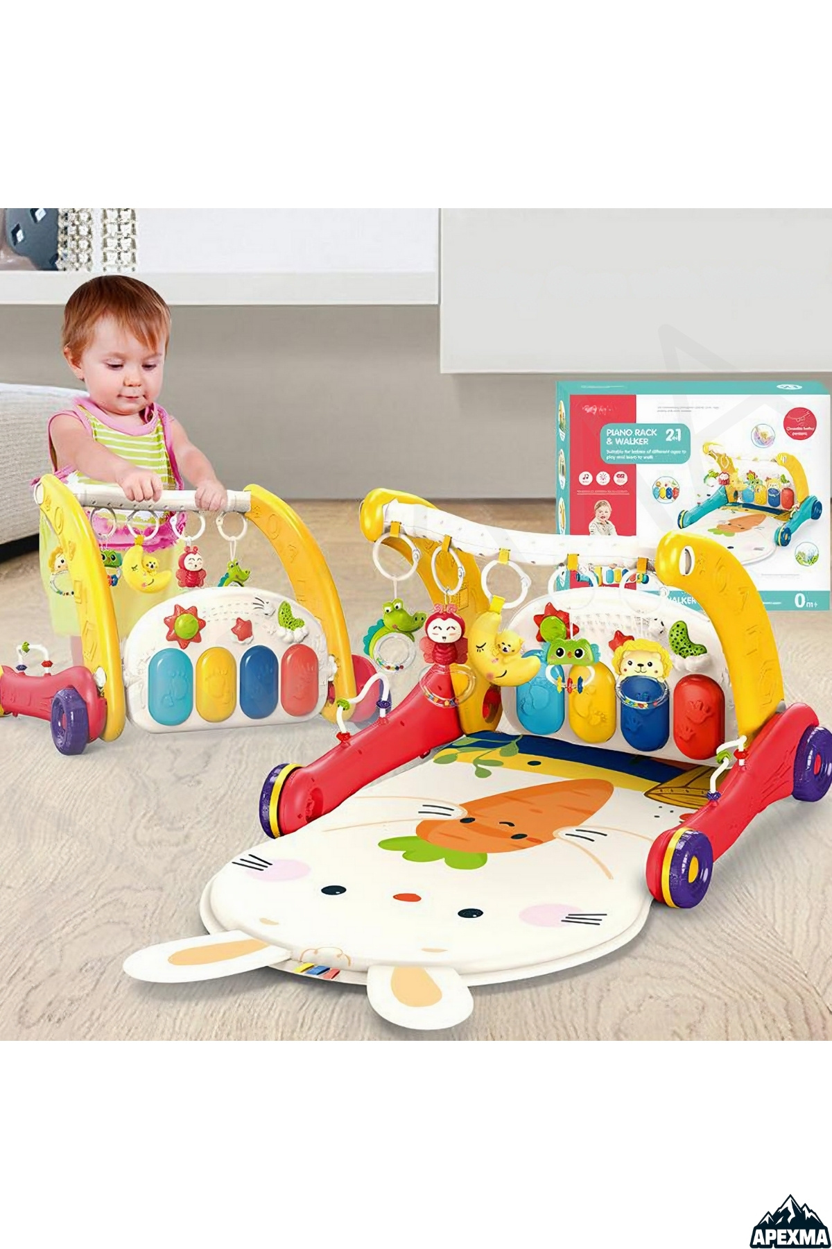 Oyuncak 2in1 Sesli Işıklı Piyanolu Bebek Yürüteci ve Tavşan Desenli Aktivite Oyun Halısı