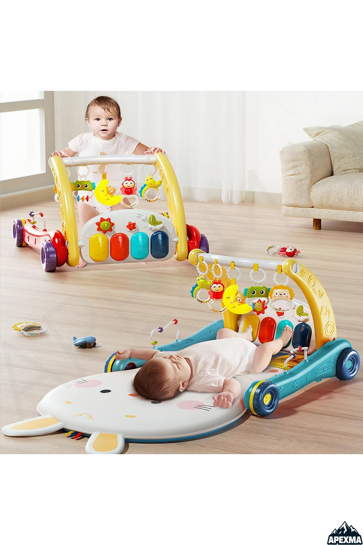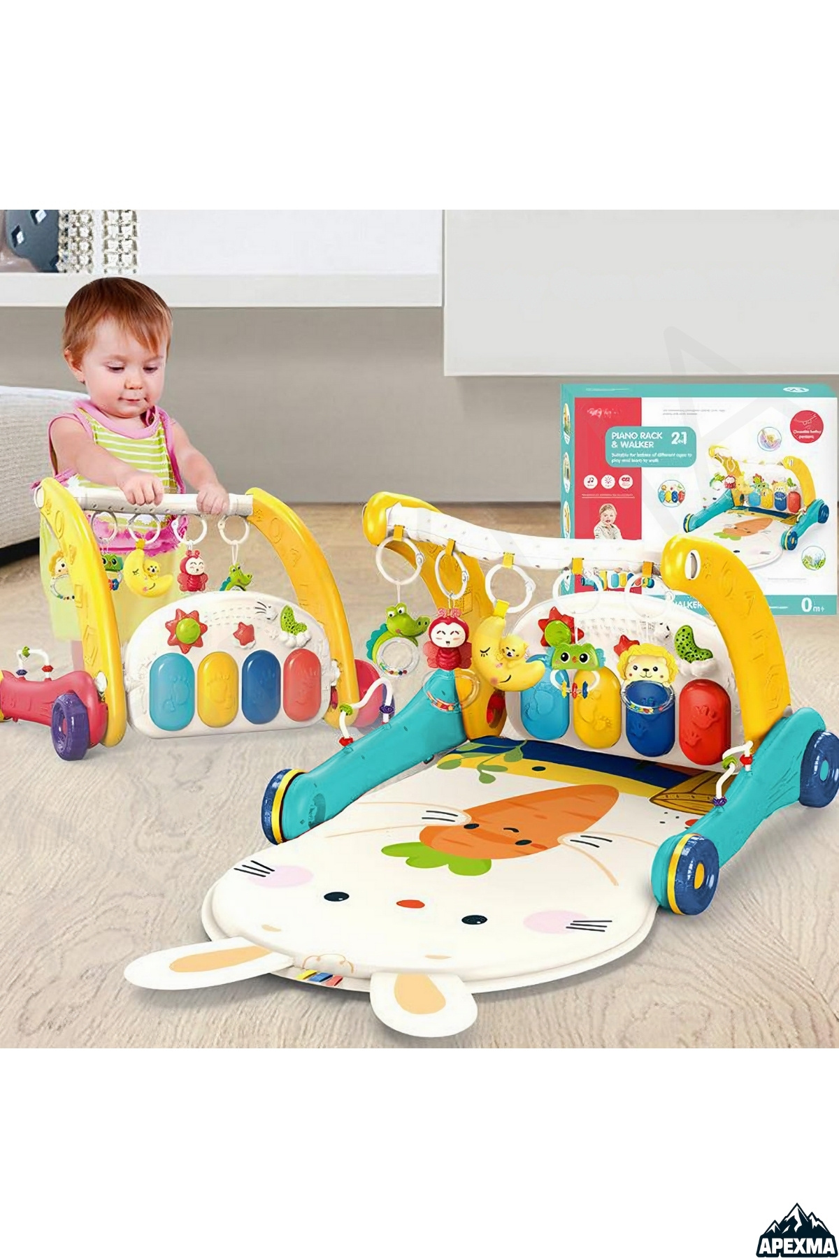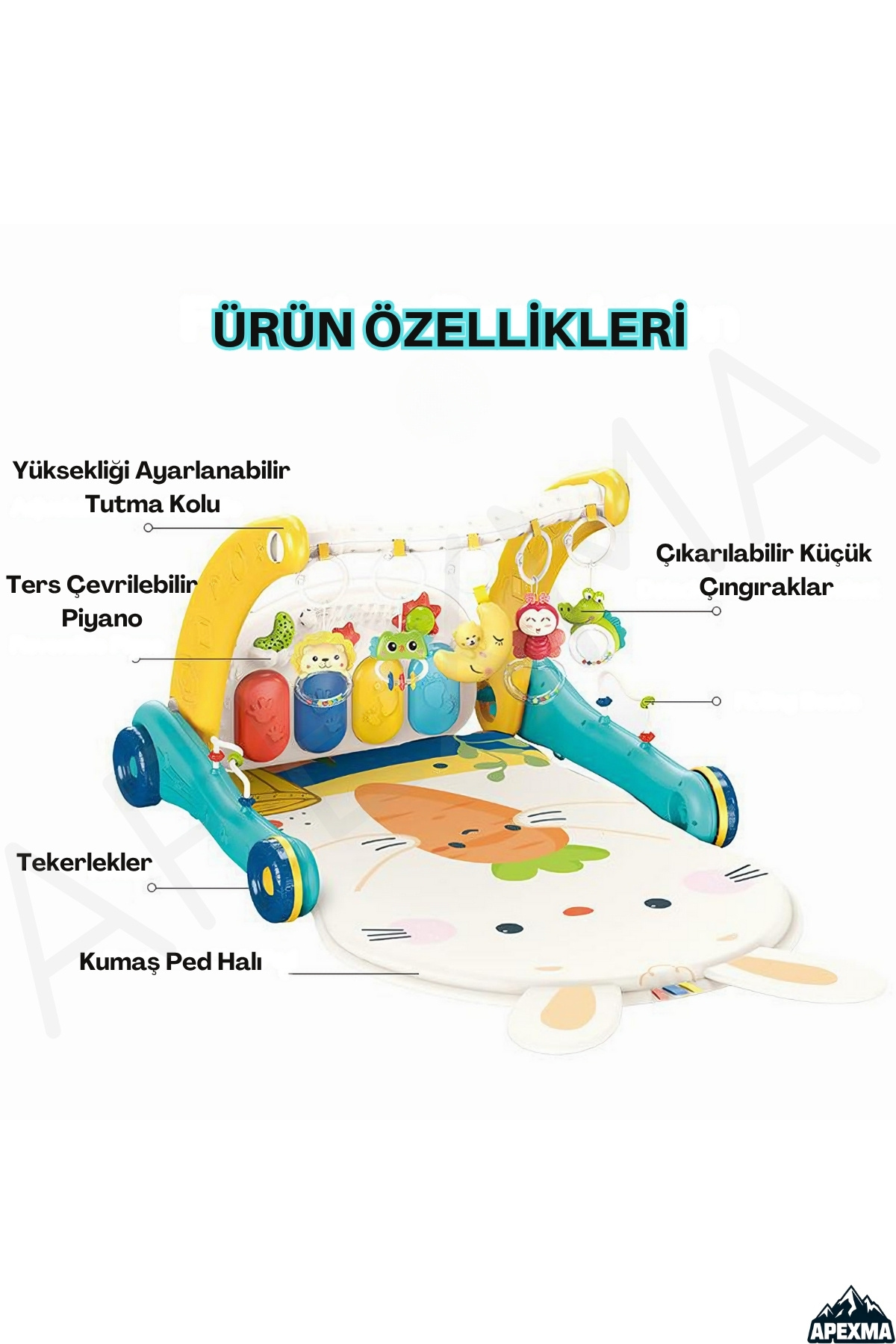 Oyuncak 2in1 Sesli Işıklı Piyanolu Bebek Yürüteci ve Tavşan Desenli Aktivite Oyun Halısı