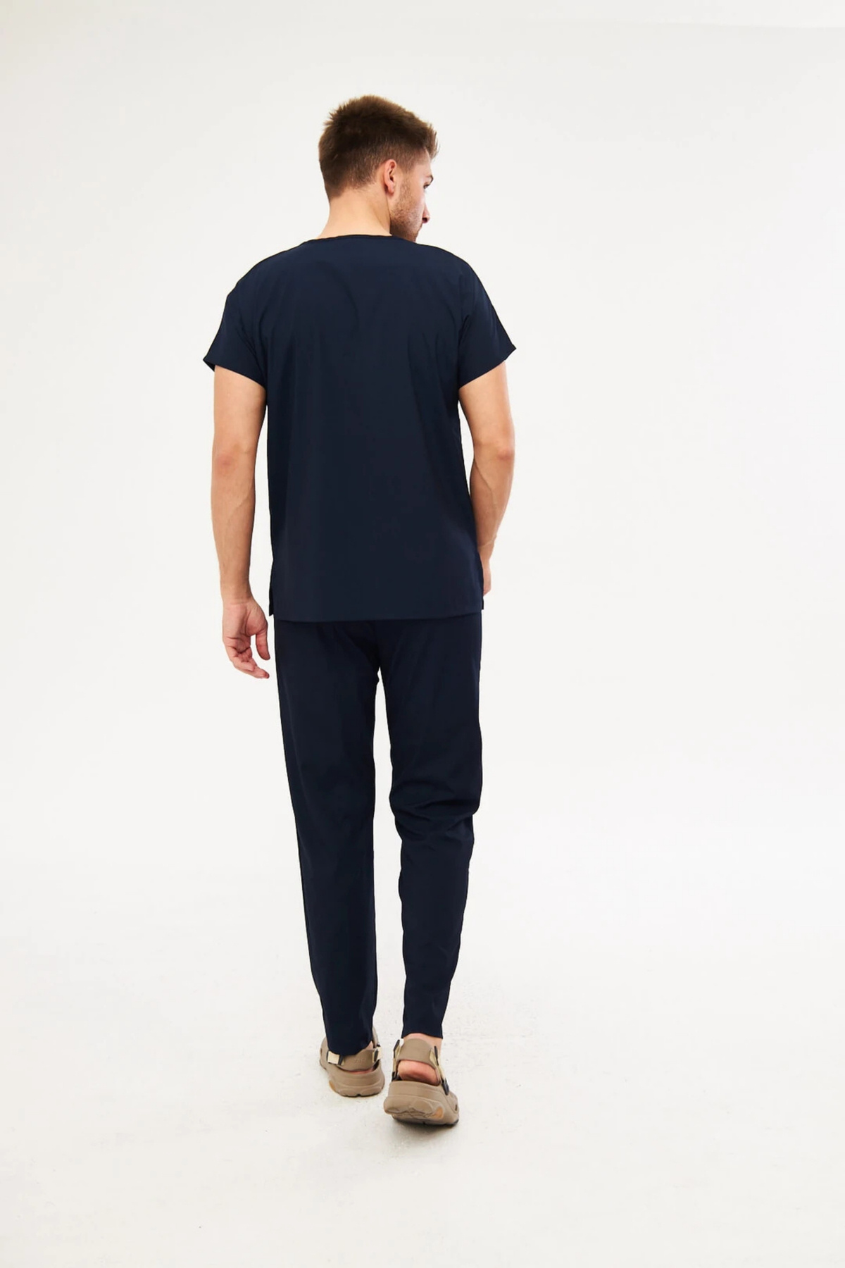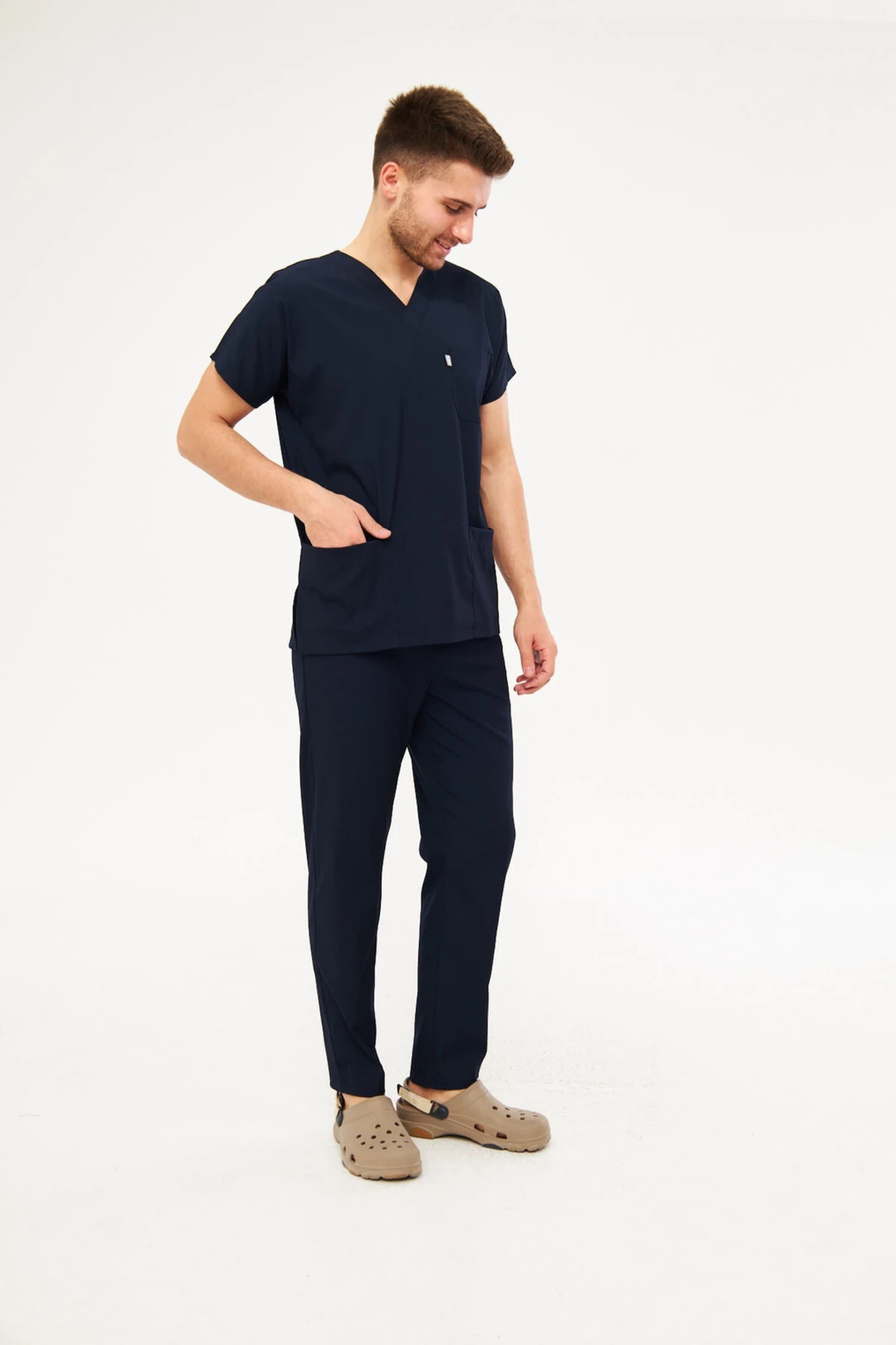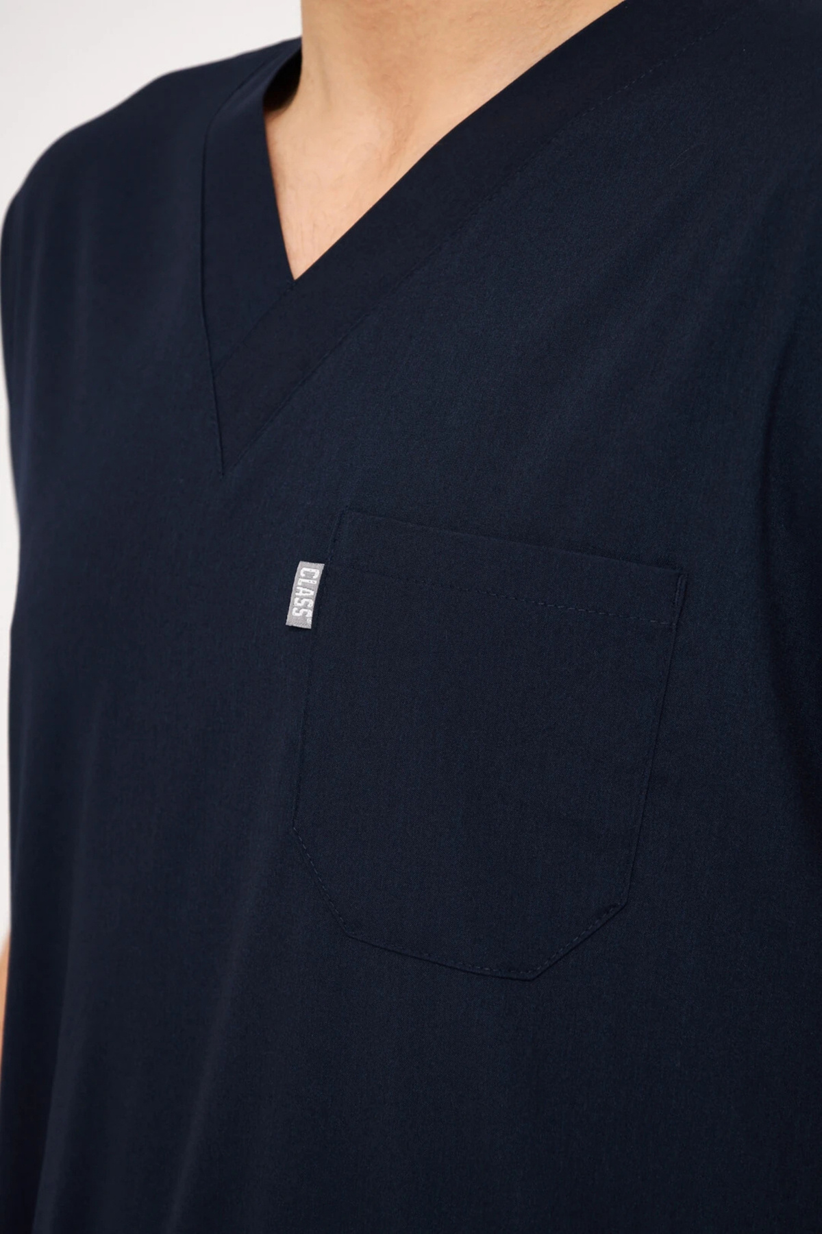 Lacivert Likralı Erkek Yarasa Kol Hemşire Ve Doktor Forması Takımı Scrubs