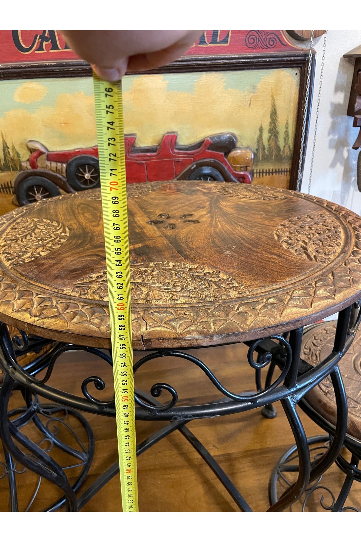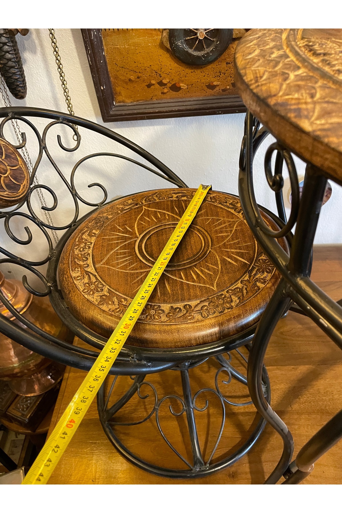 Ahşap ve metal malzemeden masa sandalye masa yükseklik 57 cm