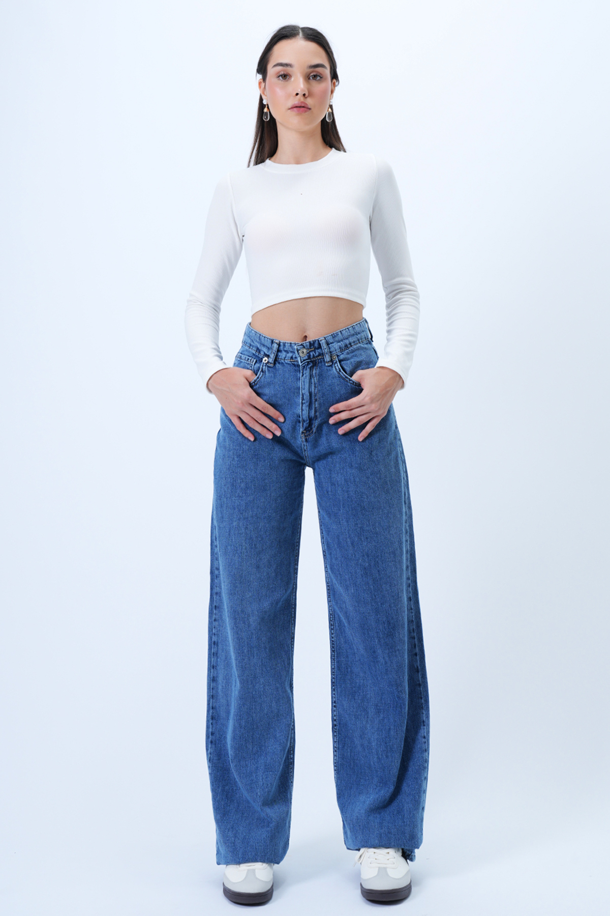 Yaz Enerjisini Stiline Taşıyan Bu 5 Cepli Yıkamalı Palazzo Jean Pantolon, Hafif Yapısı Ve Geniş Paça Formuyla Sıcak Günlerin Vazgeçilmezi. Yıkama Efekti Denim Dokusuna Doğal Bir Hava Katarken, Beş Cepli Tasarım Klasik Fonksiyonelliğini Koruyor. Palazzo Kesimi Rahatlık Sunarken Aynı Zamanda Feminen Bir Siluet Oluşturur. Gündüzden Akşama Farklı Kombinlerle Uyum Sağlayan Bu Parça, Yaz Gardırobunda Hem Şıklığı Hem De Özgürlüğü Temsil Ediyor.