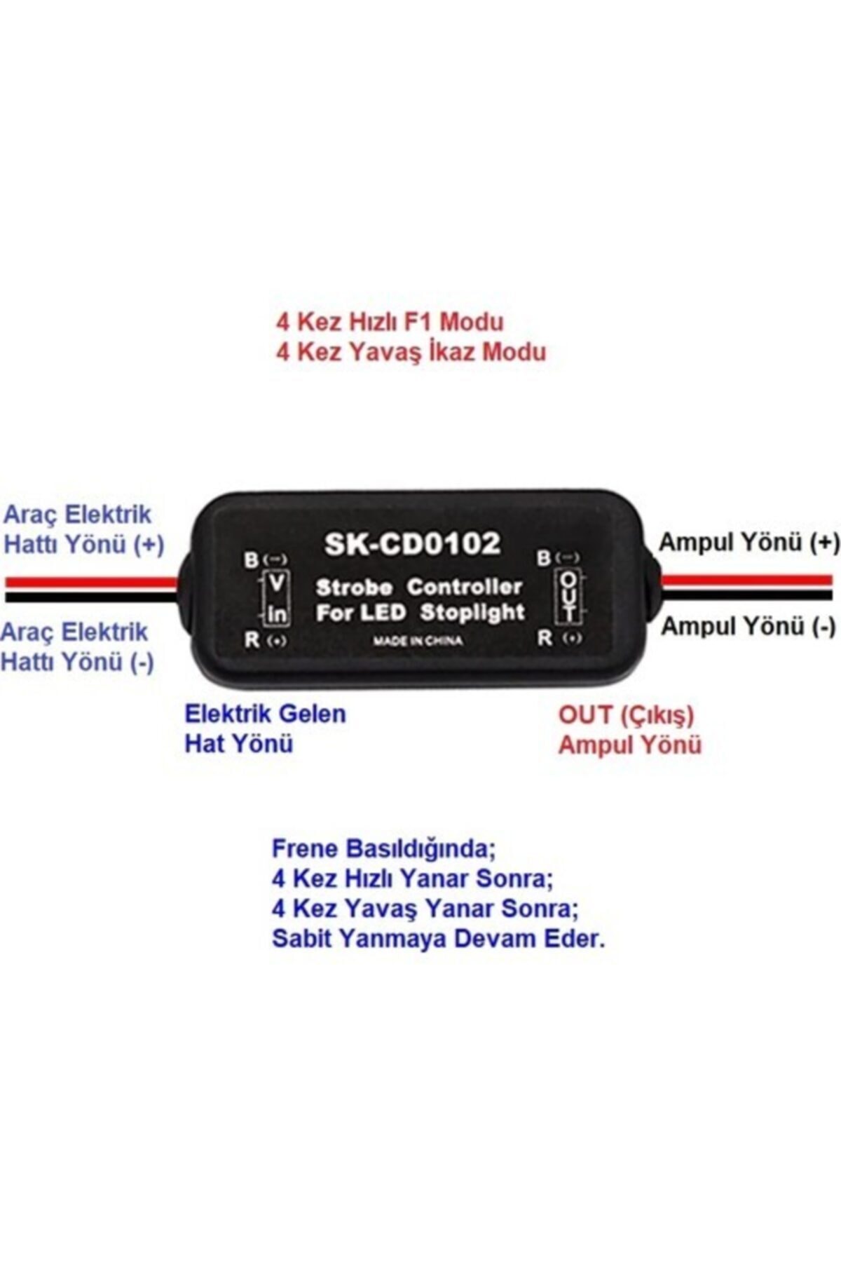 Fren Çakar Modül, Aracınız seyir halindeyken frene bastığınızda arkadan gelen araçları daha dikkat çekecek şekilde uyarı vermesidir. 12v uyumludur. Montajı kolay, kaliteli bir üründür. Özel üretimdir. Sadece LED Ampul uyumludur. Halojen Ampul ile Çalışmaz ya da Ürün bozulur. 3. Stop için ya da Fren Stopları için Kullanıma Uygundur. Frene Basıldığında