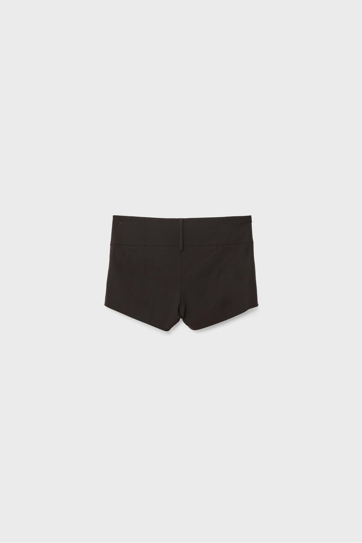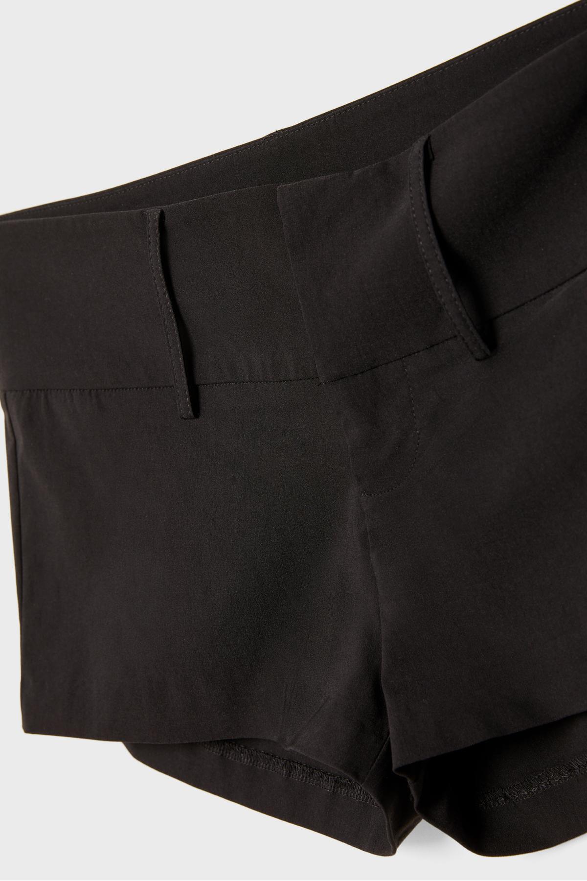 Kemer köprüsü detaylı, orta bel ve geniş belli mini şort.