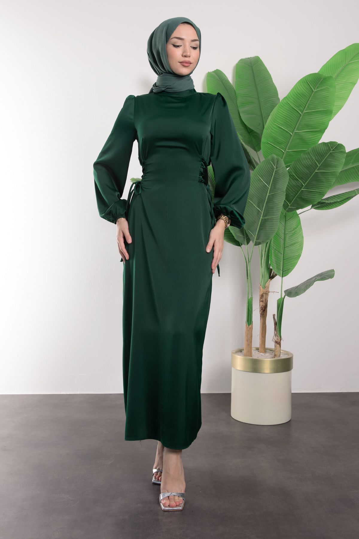 - Zarif tasarımıyla dikkat çeken saten tesettür abiye, her özel gününüzde şıklığınızı ön plana çıkarır.
