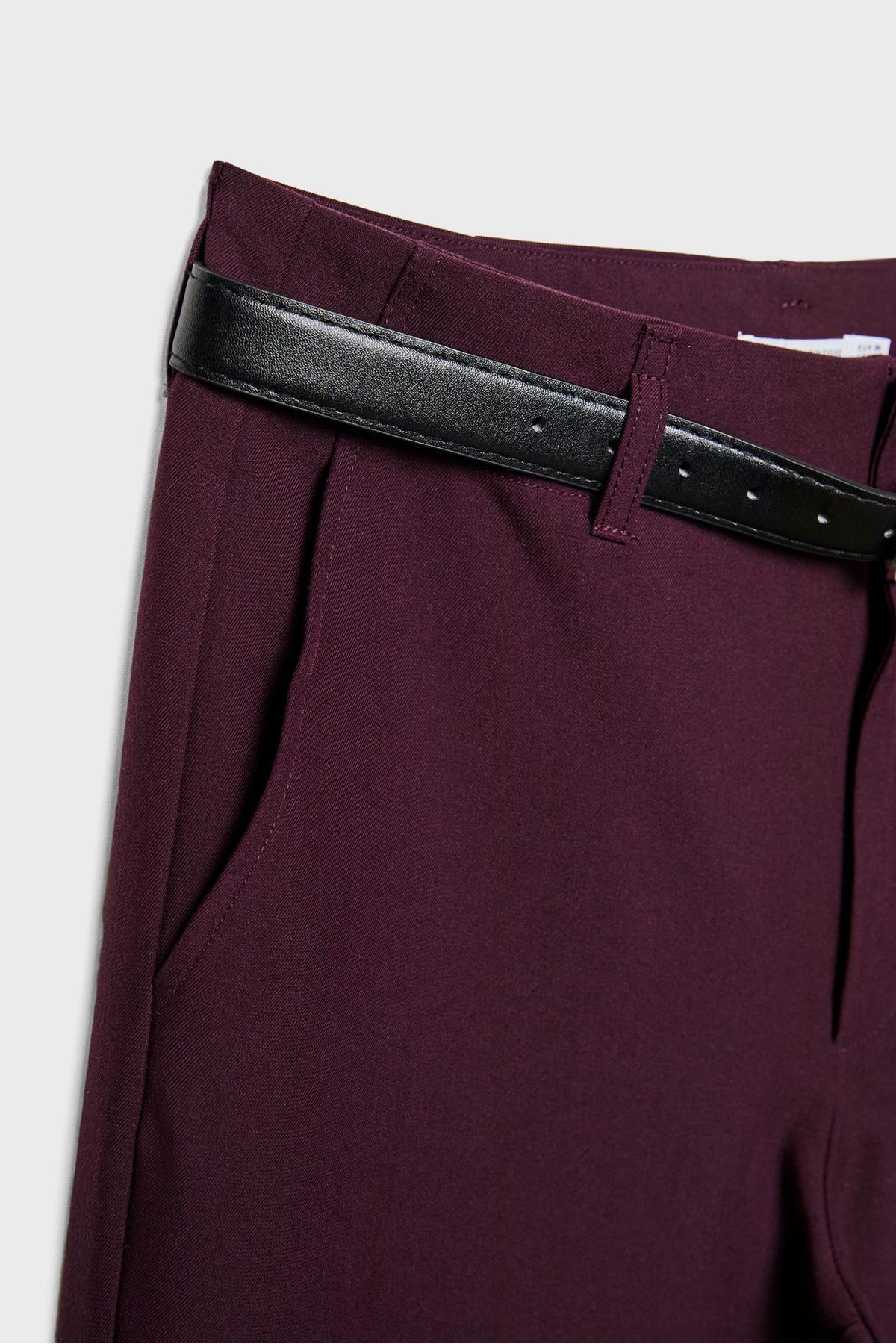 Yüksek bel ve kemer köprülü dökümlü pantolon.