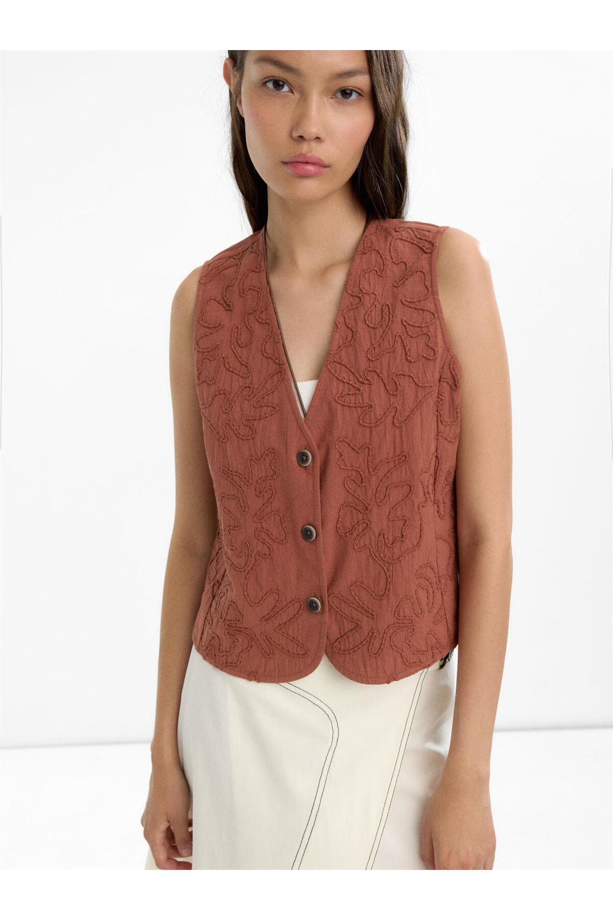 %100 Pamuk Nakışlı Yelek