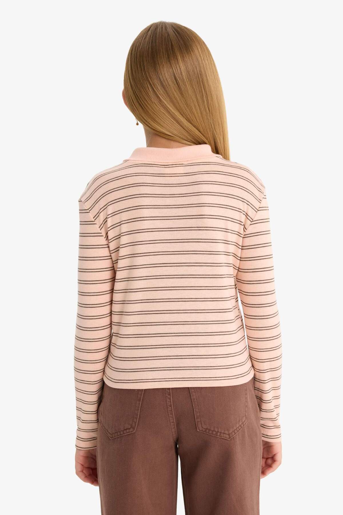 Kız Çocuk Slim Fit Dar Kesim Polo Yaka Çizgili Ribana Uzun Kollu Tişört F7131A825AU