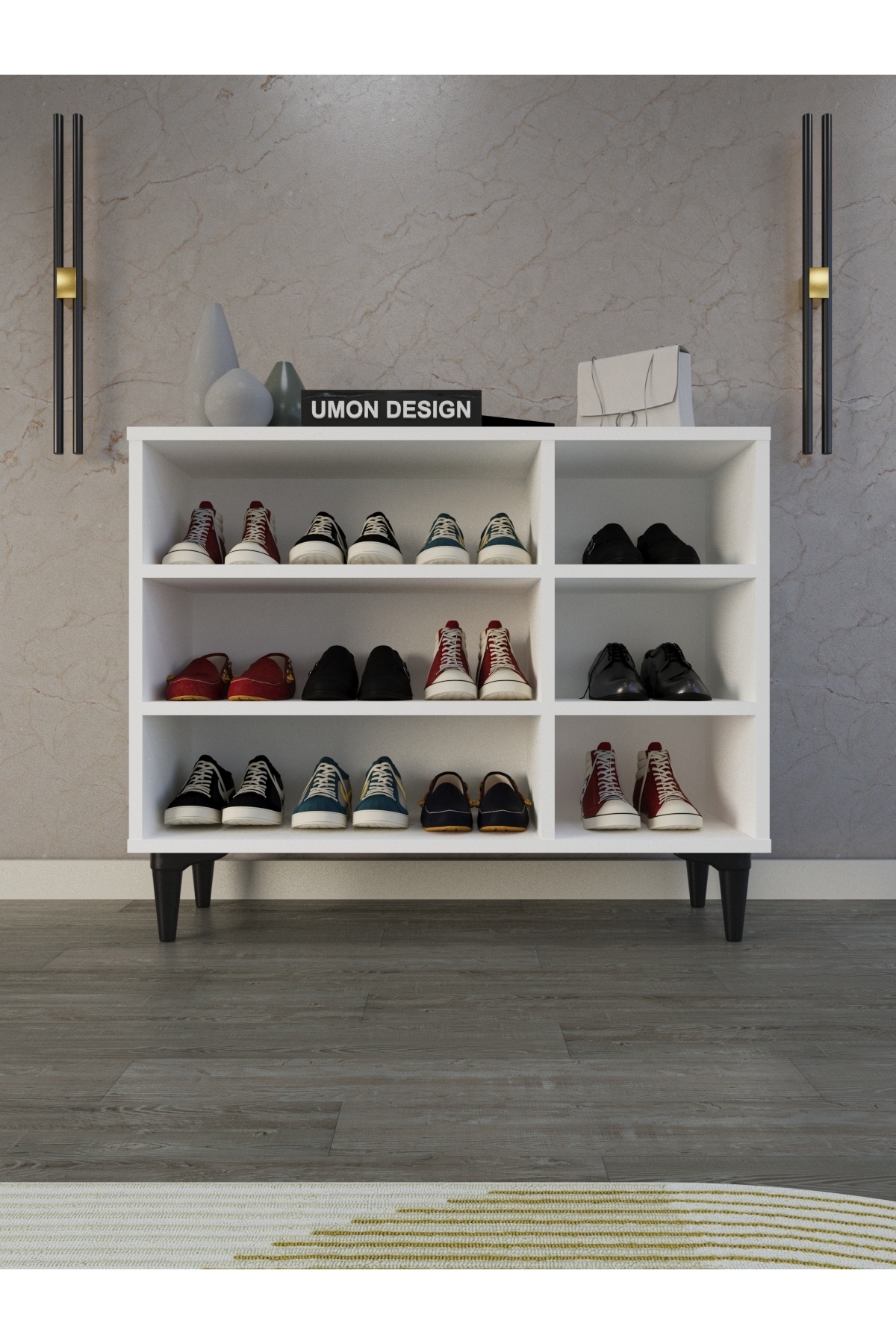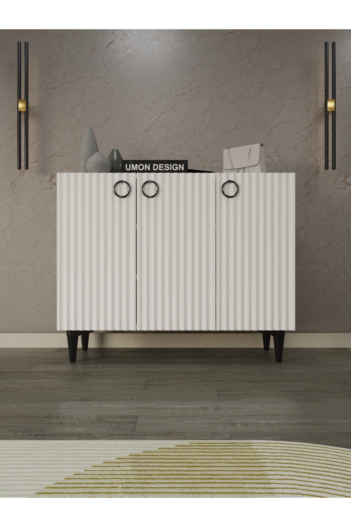 Line 4 Raflı 3 Kapaklı Ayakkabılık Çok Amaçlı Dolap Ayaklı Konsol Dekoratif MDF Kapak