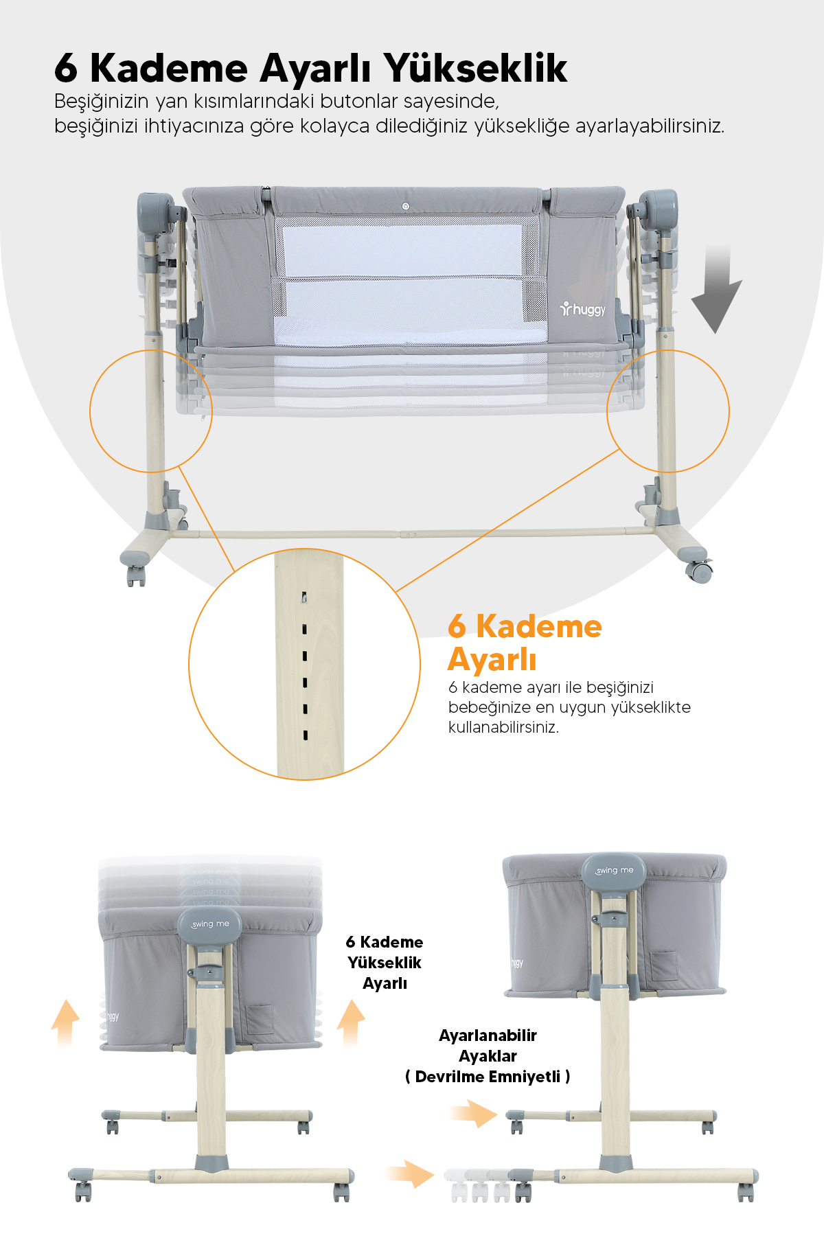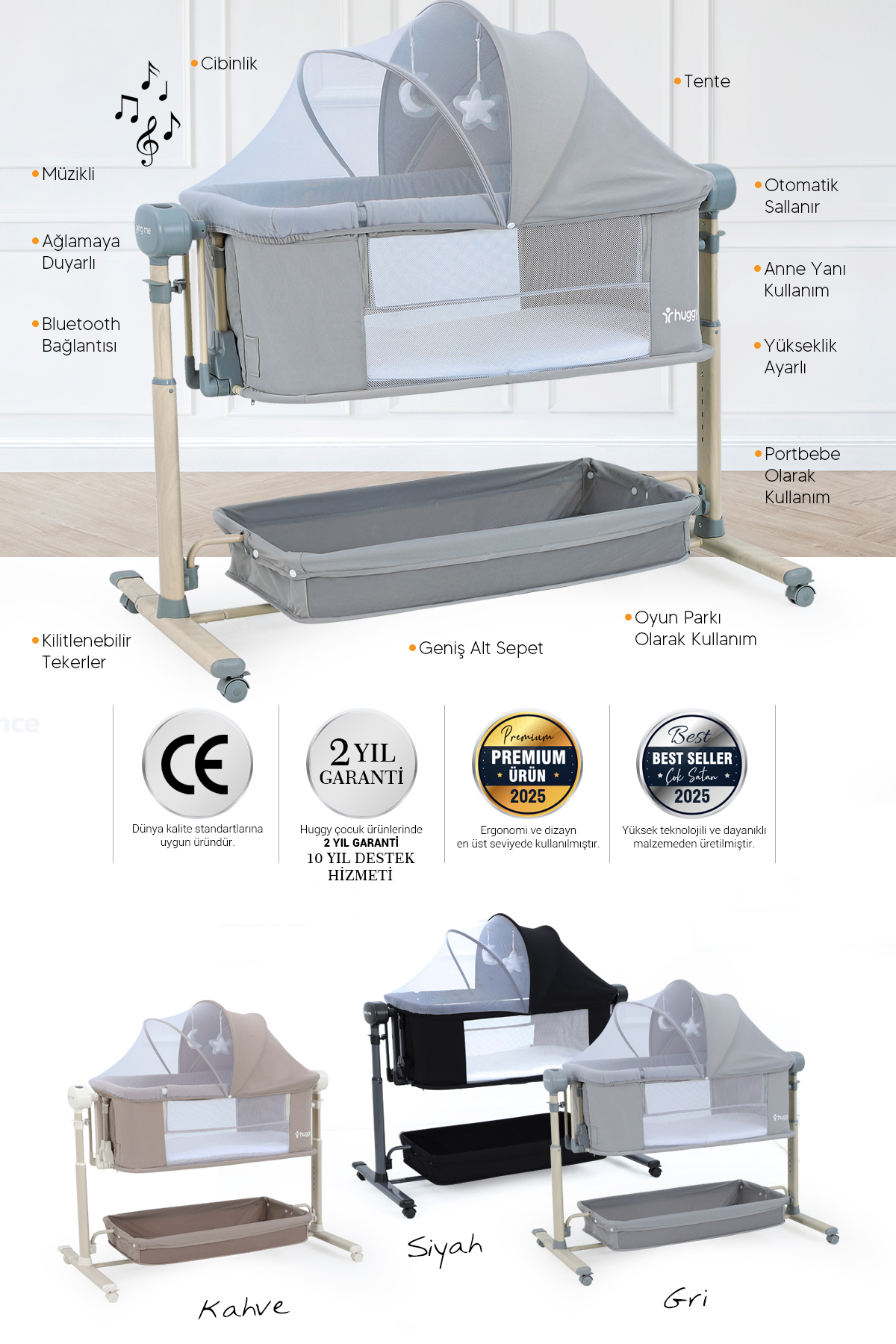 Huggy Swing Me Otomatik Sallanabilir Anne Yanı Beşik – Sensörlü, Oyun Parkı ve Portbebe Özellikli