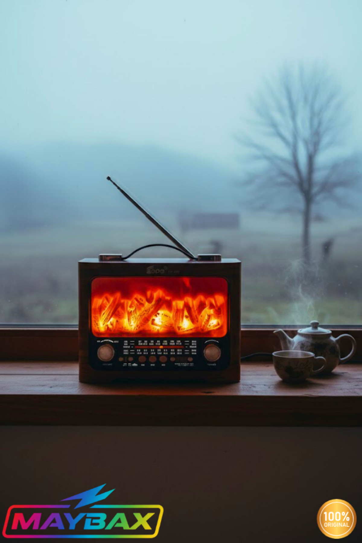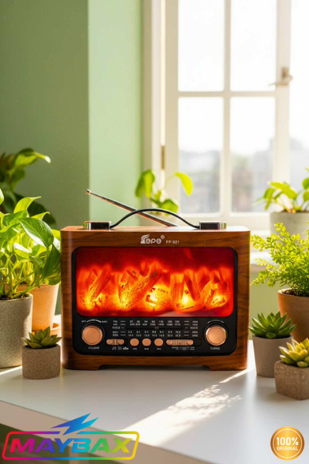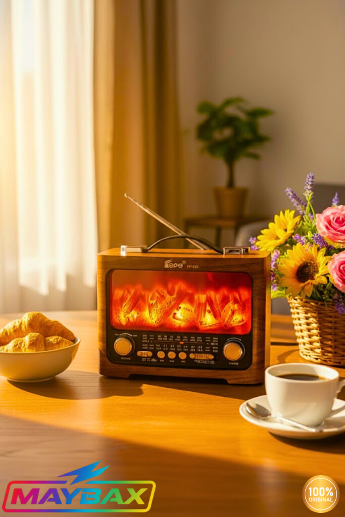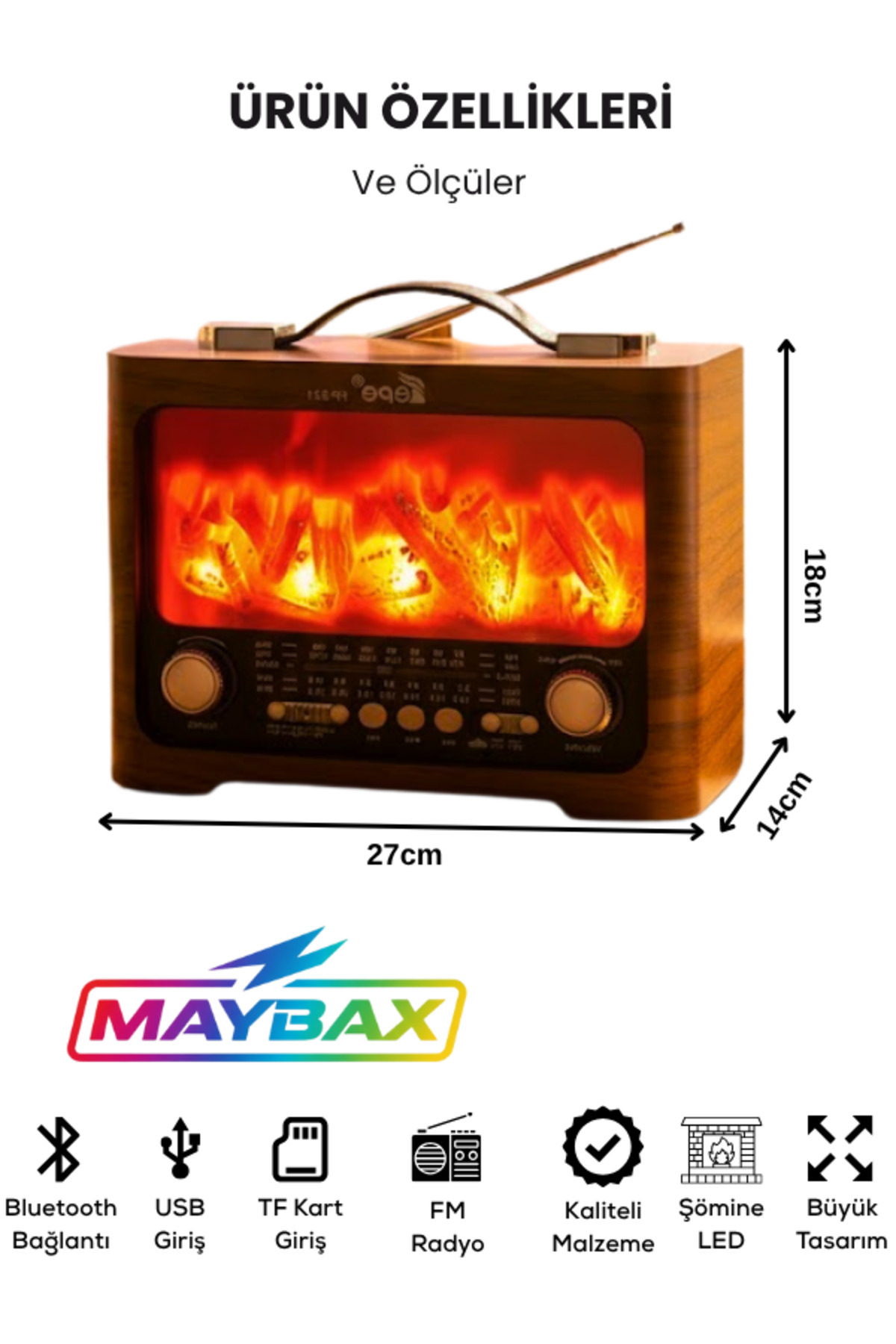Şömineli Radyo Bluetooth FM USB TF Kart Aux Destekli Fm Type-c Şarj Girişli Nostaljik Radyo