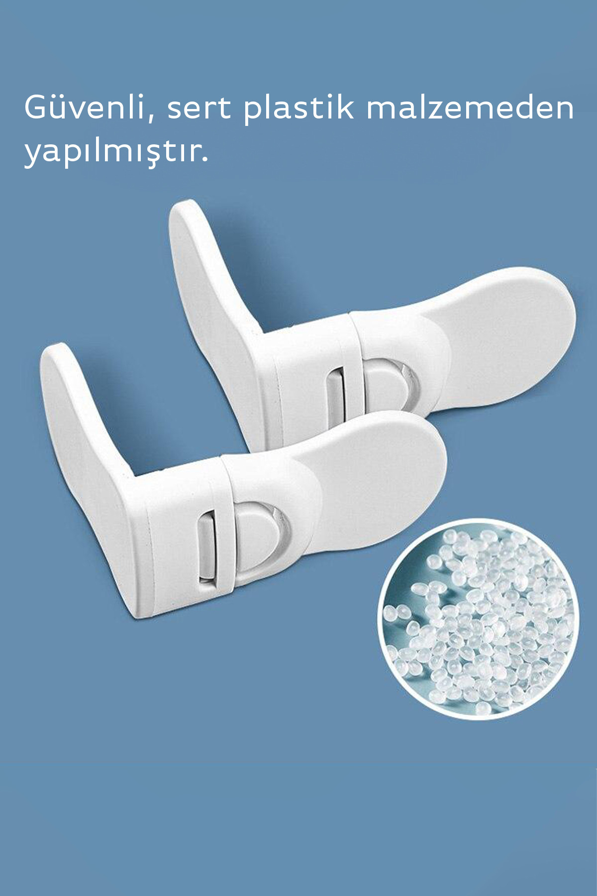 - Çocukların güvenliği için tasarlanmış, dolap ve kapıların açılmasını engelleyen 1 adet koruyucu kilit aparatı.