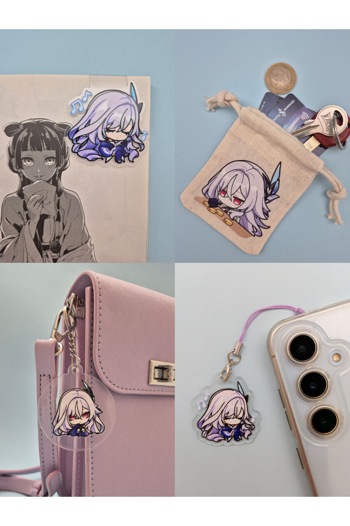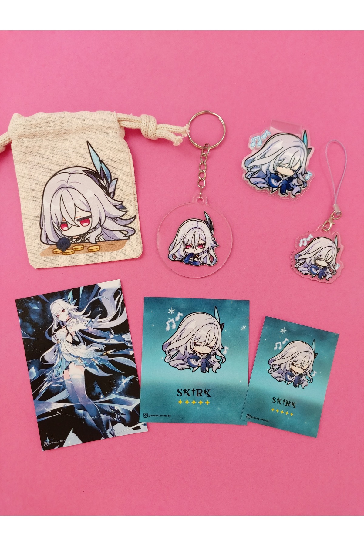 Genshin Impact Skirk kese, anahtarlık, magnetli kitap ayracı, charm hediye seti