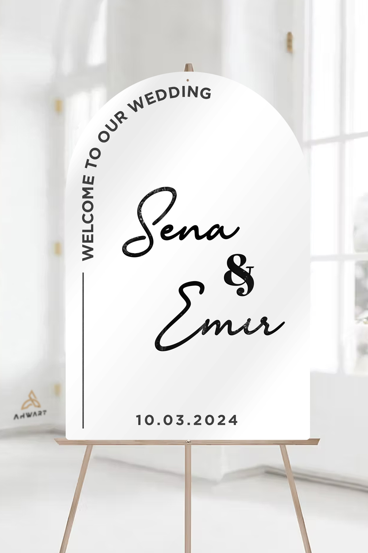Düğün & Nişan Lüks Beyaz Mdf Üzeri Yazılı Karşılama Panosu (60*40cm)