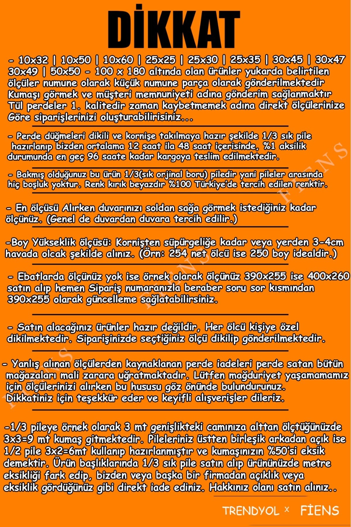 )hata veya defo çıkması durumunda ürün iadesi kabul edilir ürünlerimizde çekme ve renginde solma olmaz zarifliği ile gözlerinizi kamaştırır tül perde dışındaki tüm ürünler görsel amaçlı kullanılmıştır sağlıklı günlerde iyi alışverişler dileriz.