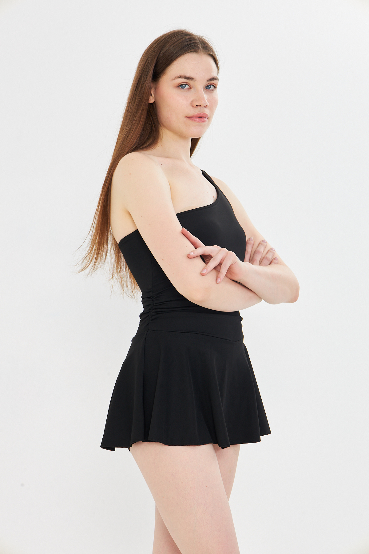 - Tek omuzlu üst siluetiyle sofistike bir hava katarken, şortlu alt siluetiyle dinamik bir stil sunar.