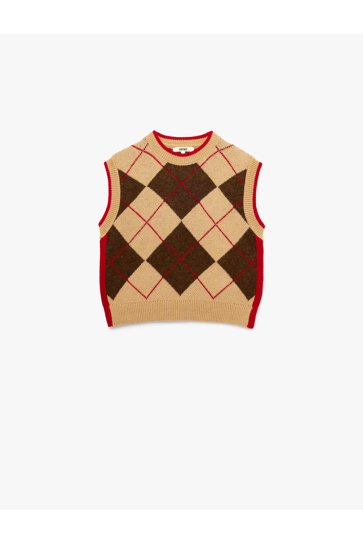 Baklava Desenli Kolsuz Bisiklet Yaka Triko Süveter