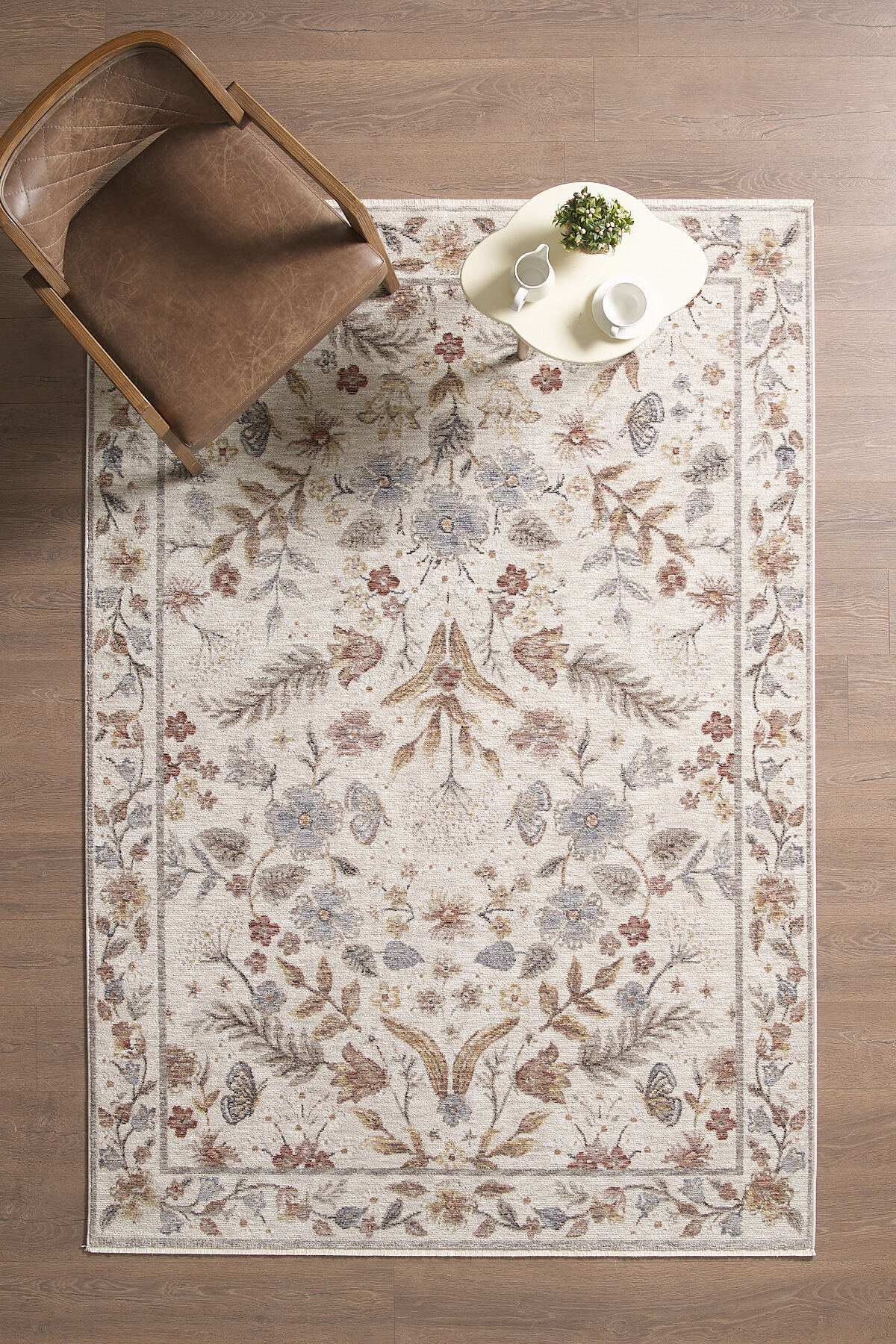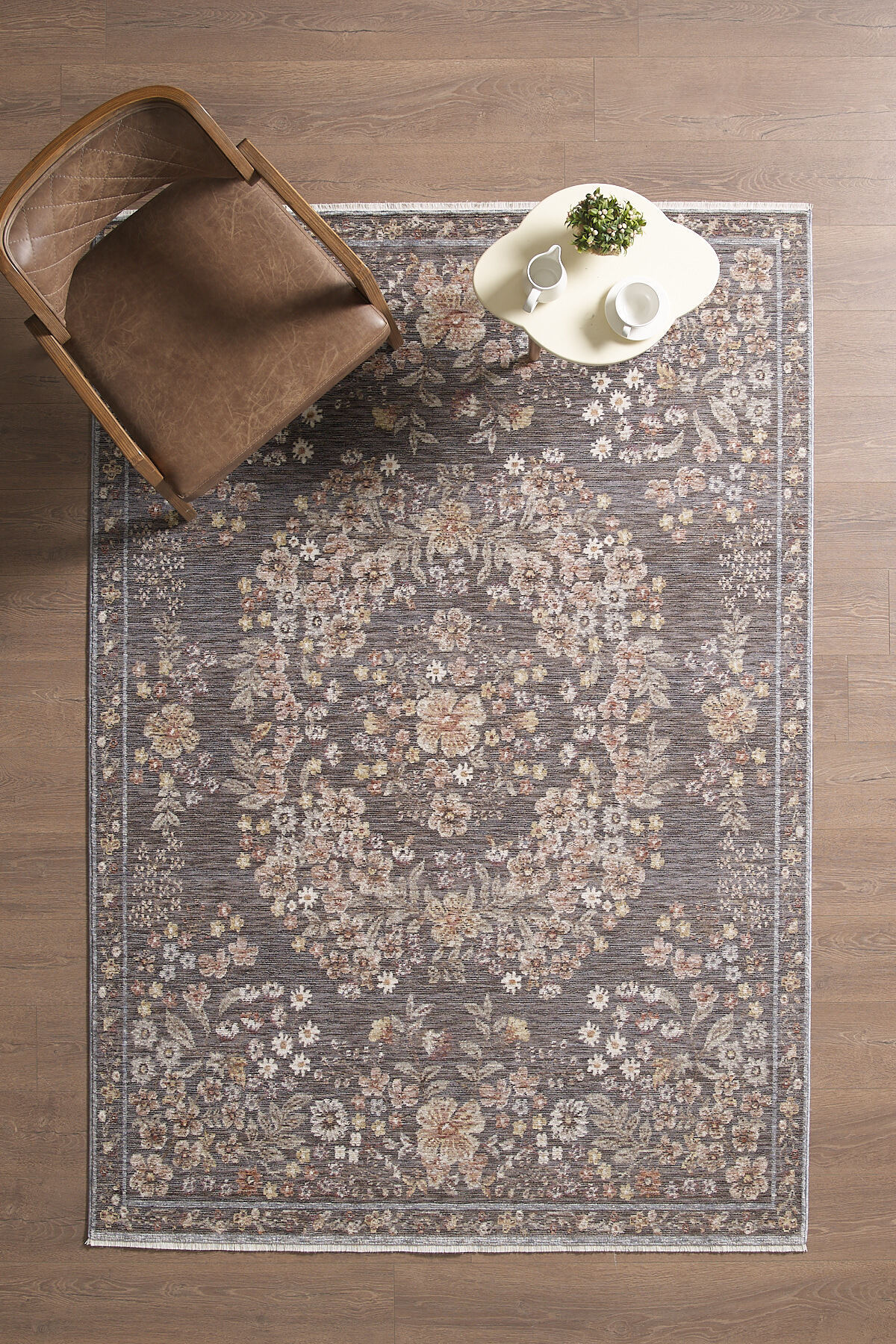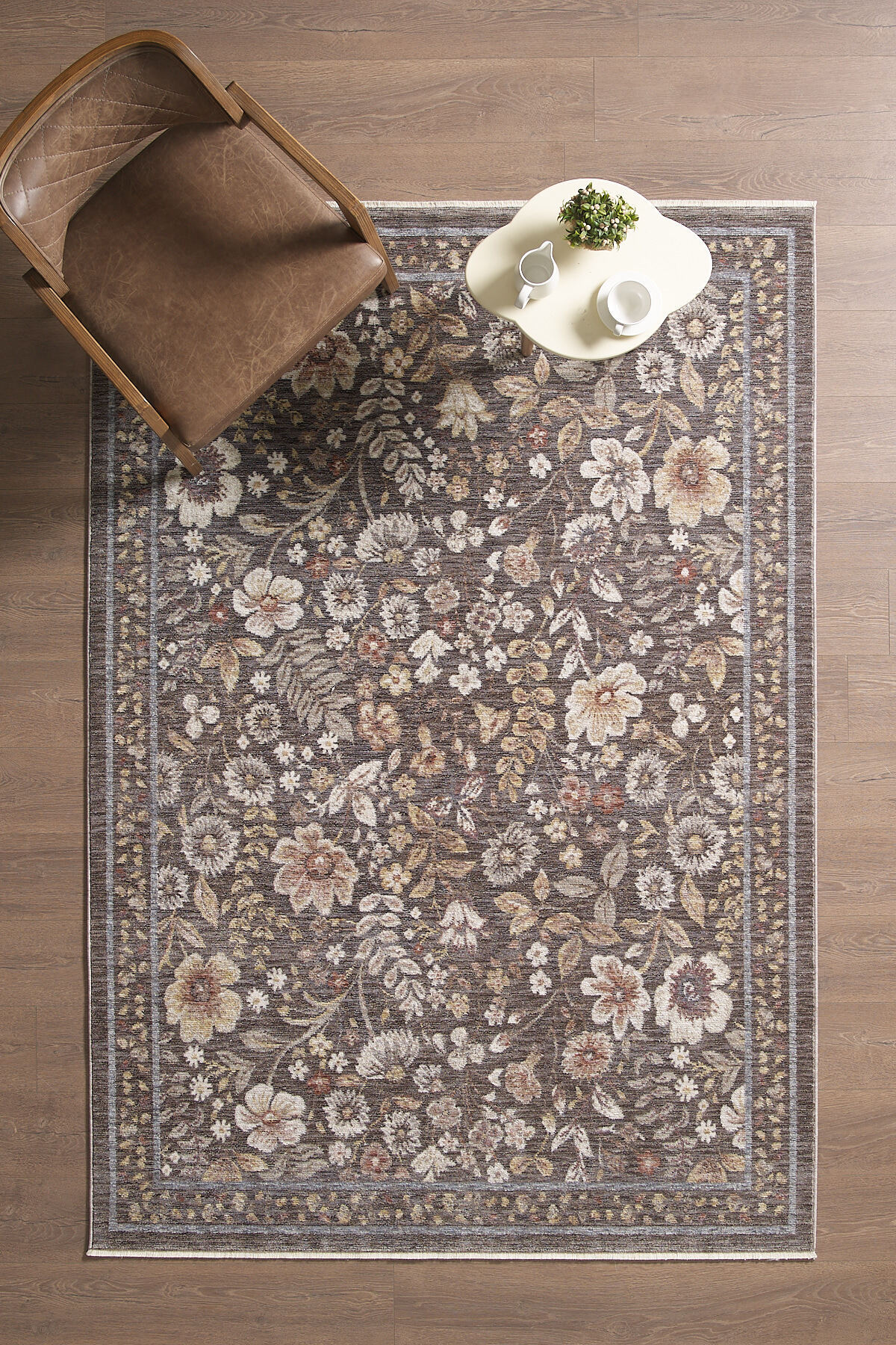Frezia Floral Bambu Polyester Oturma Odası Salon Mutfak Halısı Eskitme Çiçekli Vintage Halı