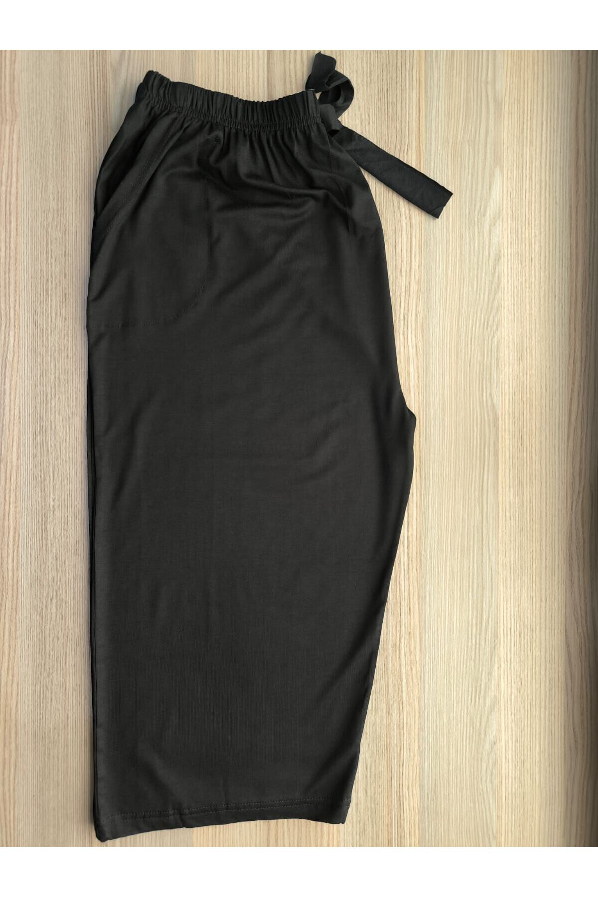 Büyük Beden Pamuklu Likralı Viskon İnce Yazlık Cepli Penye Kapri Pijama Pantolon