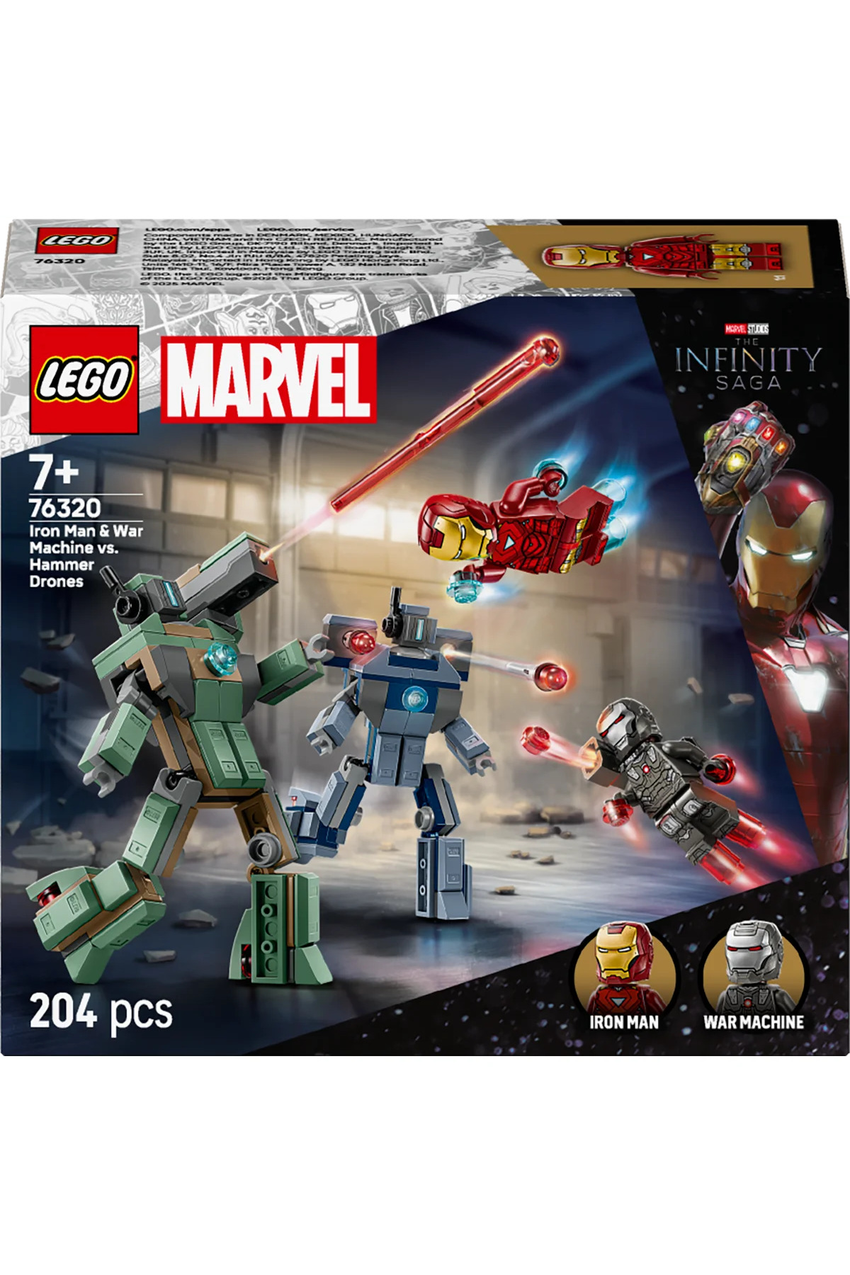 Marvel Studios Iron Man 2 filminden esinlenen LEGO ǀ Marvel Iron Man ve War Machine, Hammer İnsansız Hava Araçlarına Karşı (76320) setiyle 7 yaş ve üzeri çocuklar, nefes kesen Süper Kahraman savaş sahnelerini yeniden yaşayabilir. Erkek ve kız çocuklar için mükemmel bir hediye olan bu set, destansı aksiyon sahnelerini canlandırmak için parçalarla yapılmış 2 güçlü Hammer İnsansız Hava Aracını içerir. Set, Iron Man ve War Machine minifigürlerinin yanı sıra duruşları tamamen ayarlanabilir yeşil ve mavi Hammer İnsansız Hava Araçlarını içerir. Yeşil drone, omzundaki yaylı atıcıyla hızlı saldırılar yapabilirken, mavi drone, her iki omzundaki itmeli atıcılarla heyecan dolu çatışmalara olanak tanır. War Machine minifigüründe omuzda kırmızı mermi atıcısı ve el ve ayaklarında silahlar bulunur. Iron Man ise mavi enerji patlamaları ve lazer parçalarını tutabilir. Çocuklar, bu figürlerle filmdeki heyecanlı sahneleri tekrar tekrar canlandırabilir ve sınırsız aksiyon dolu oyunlar oluşturabilir. Ayrıca çocuklar, LEGO Builder uygulaması sayesinde modellerini 3 boyutlu olarak yakınlaştırabilir, döndürebilir ve yapım ilerlemelerini takip edebilir. 204 parçadan oluşan bu Süper Kahraman seti, hem oyun oynamak hem de sergilemek için harika bir koleksiyon parçasıdır