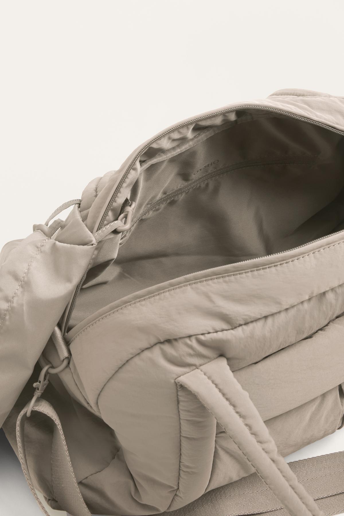 Kısa taşıma sapları ve omuzu korumak için dolgulu parçalı, çıkarılabilir uzun bir omuz askısı bulunur.