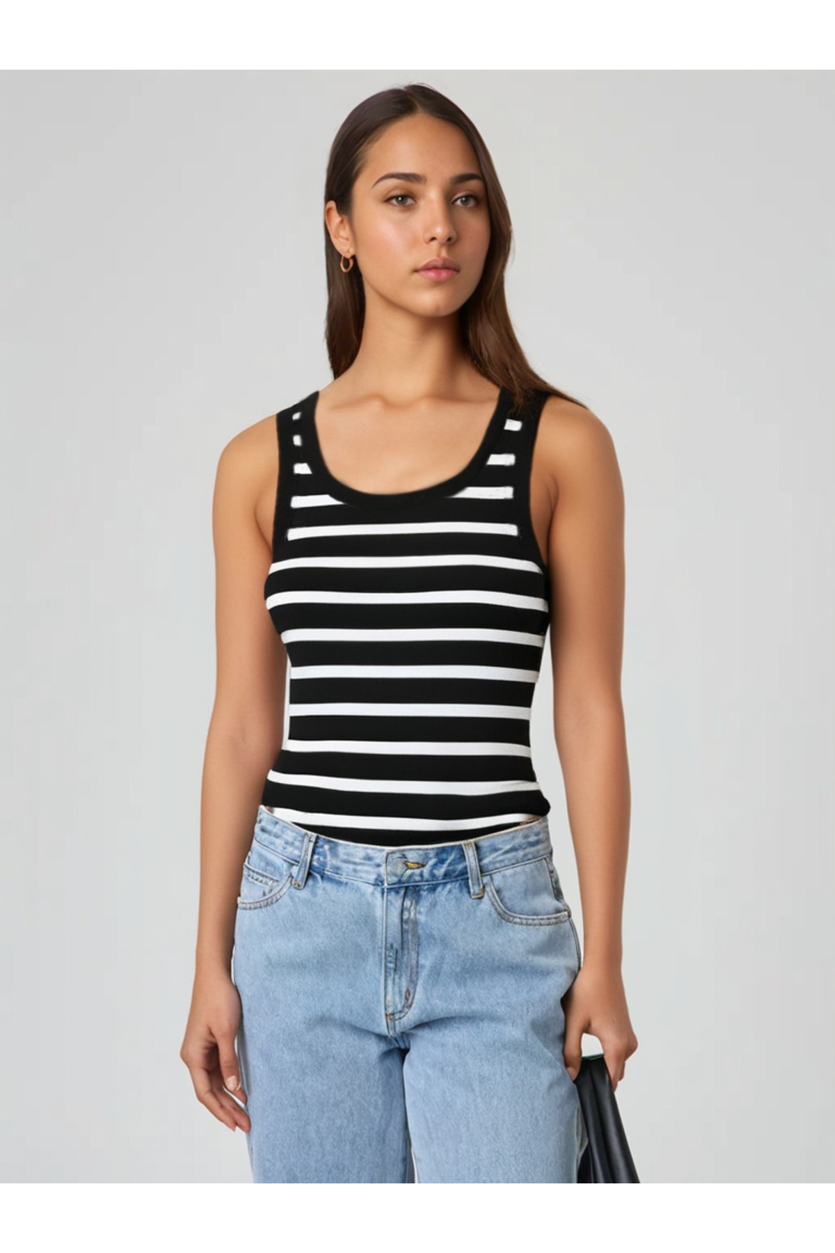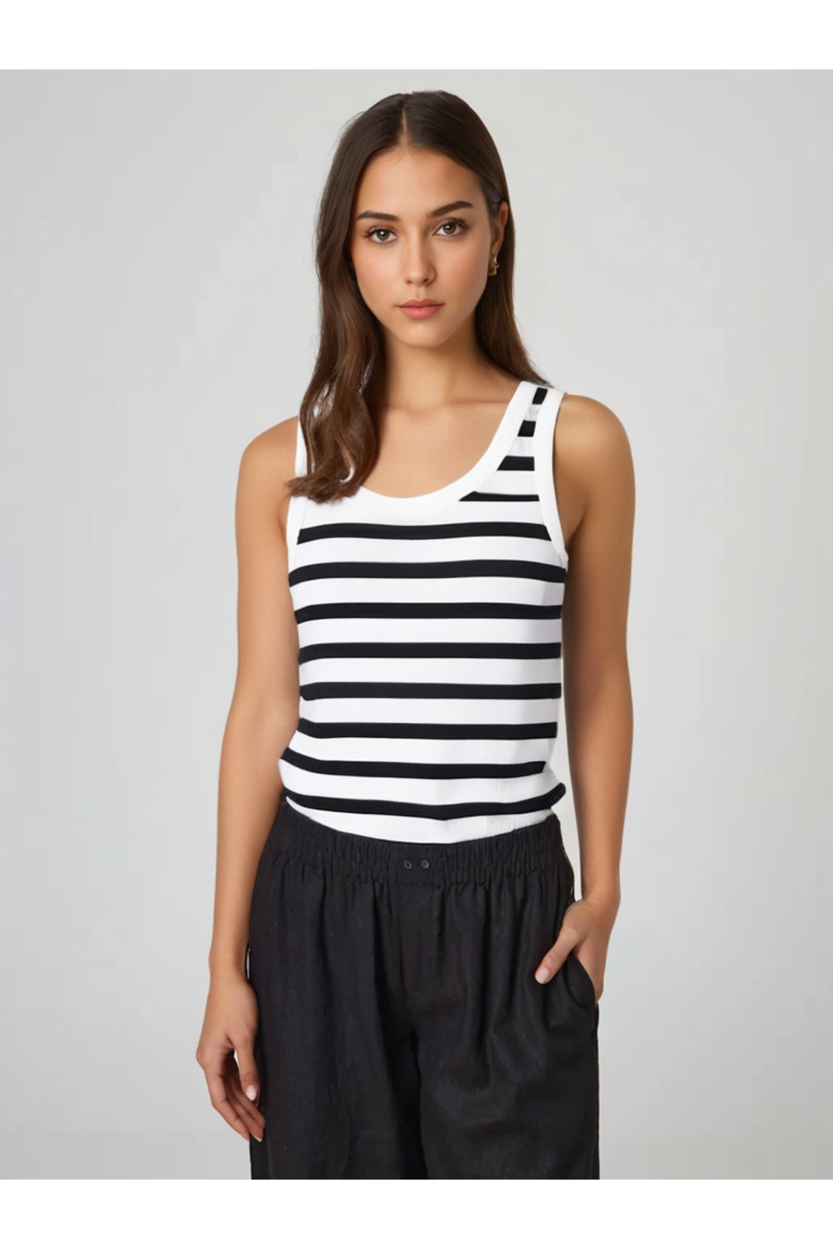 - Siyah çizgili deseniyle kolayca kombinlenebilir ve zamansız bir stil oluşturur.