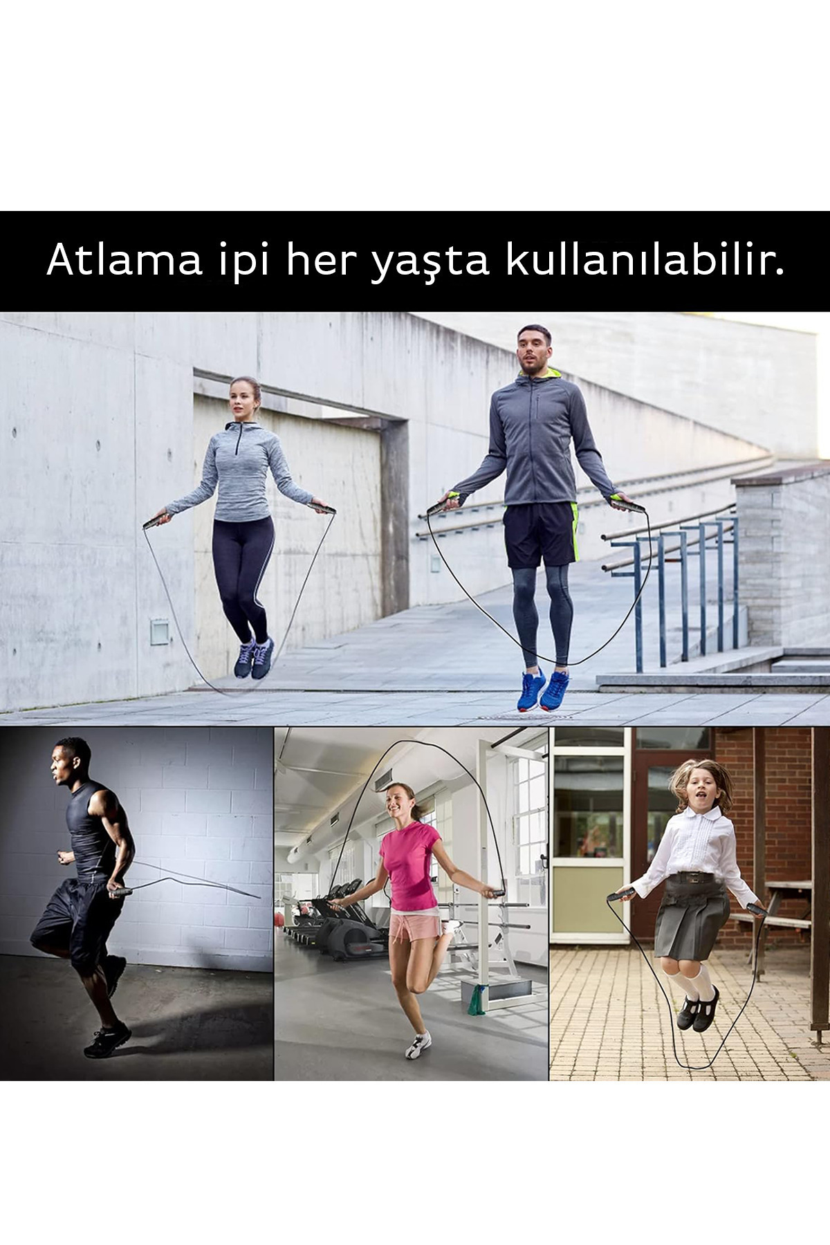 ekstra konforlu ve güçlü tutuş için hafif, nefes alabilen ve ergonomik saplarla üretilen spor salonu atlama ipi.
