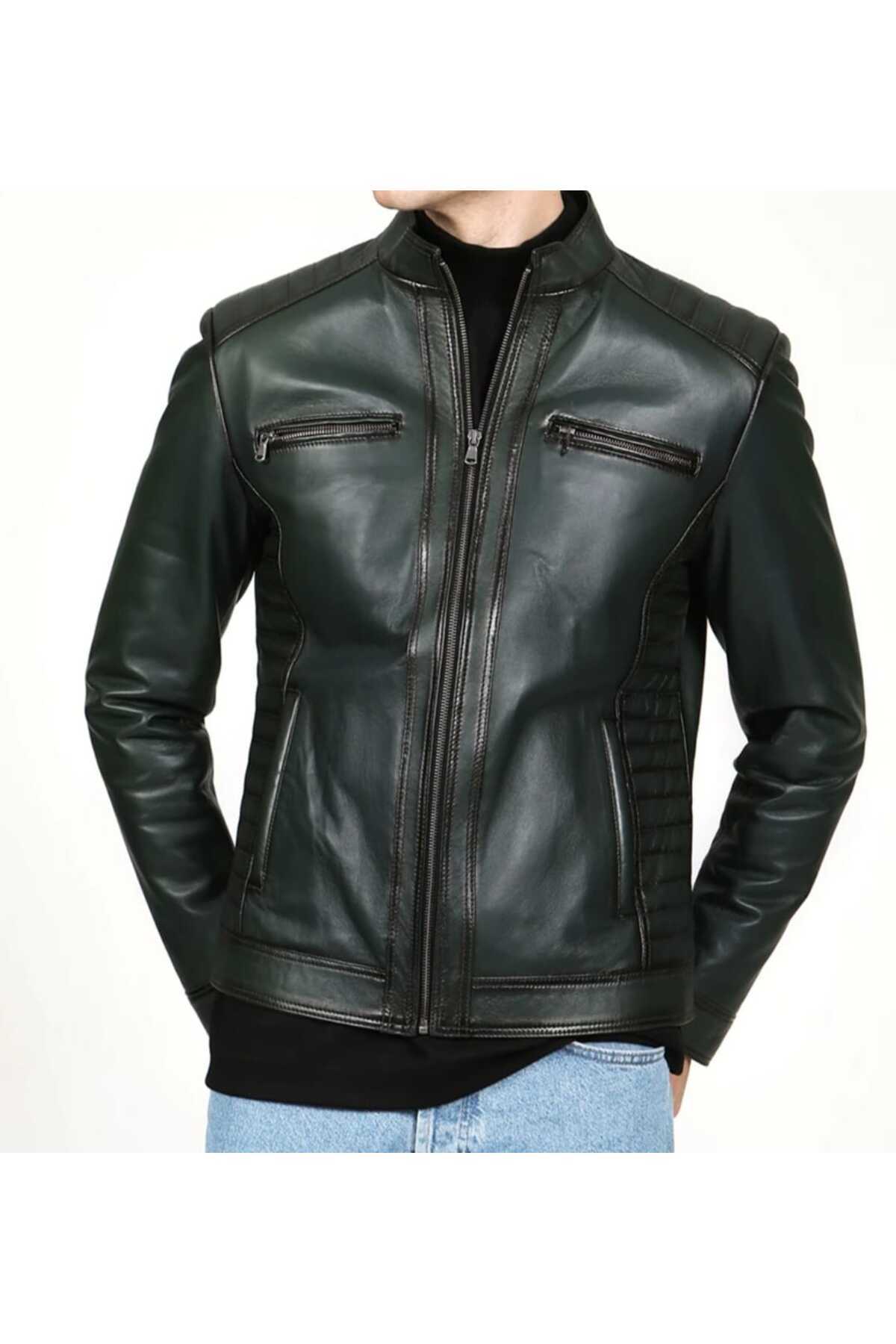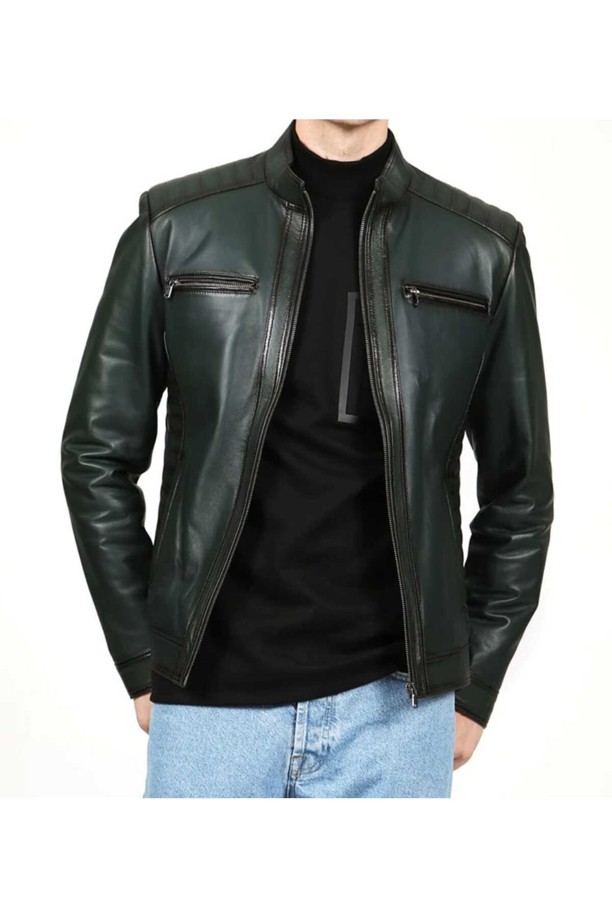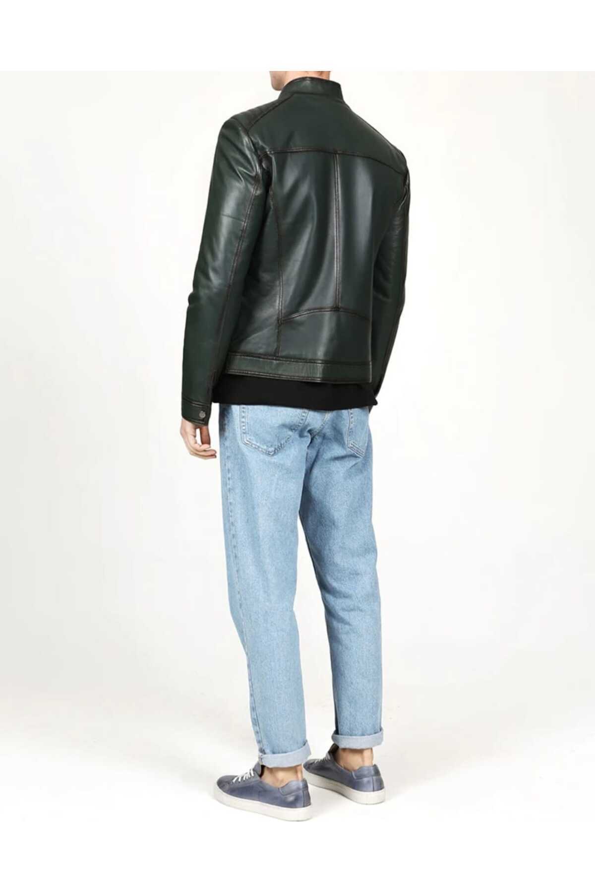 Hakiki Deri Spor Kapüşonsuz Kuzu Derisi Erkek Mont