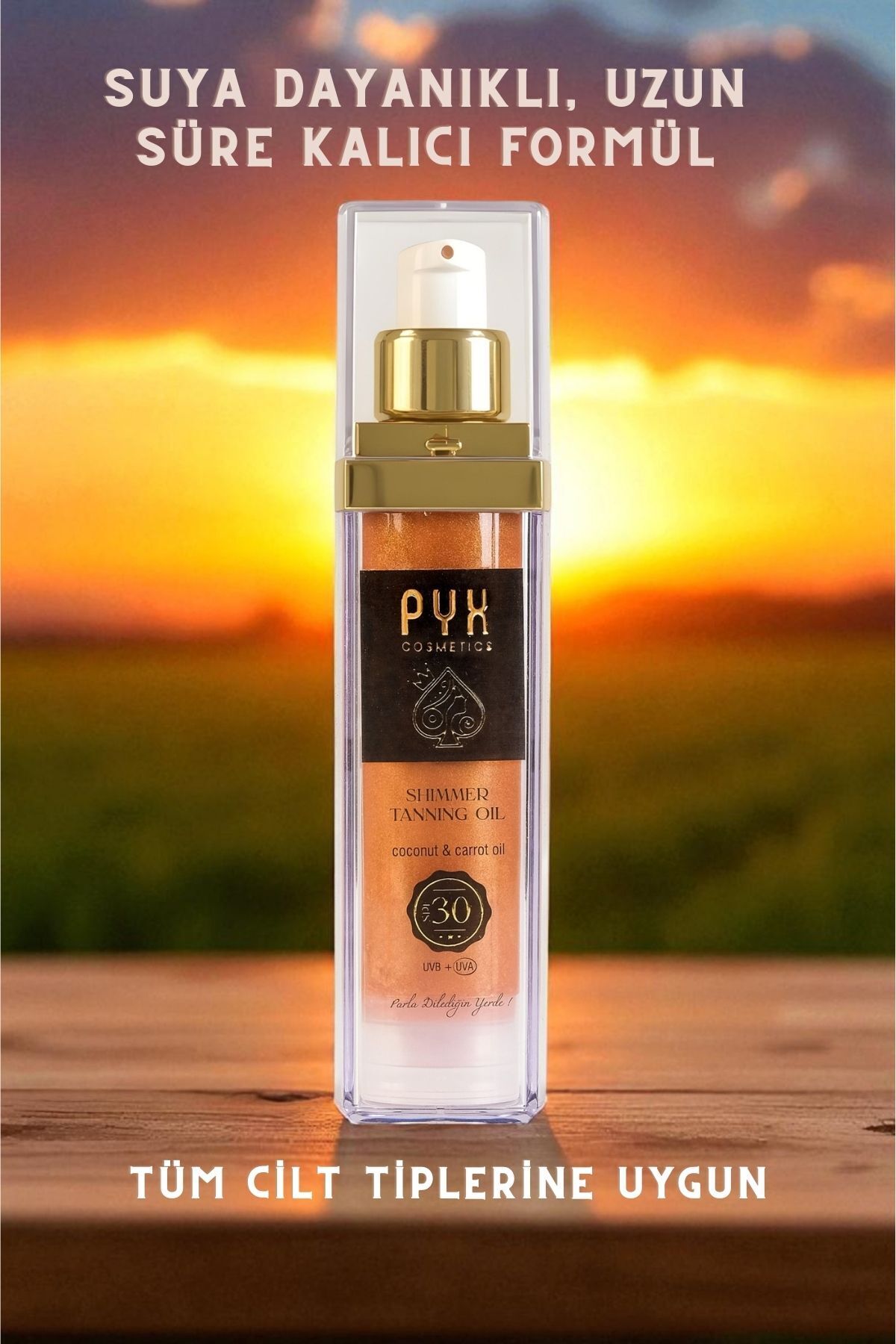 PYX Cosmetics Shimmer Tanning Oil SPF 30 – Işıltılı ve Koruyucu Bronzluk! Güneşin keyfini çıkarırken cildinizi koruyun ve ışıl ışıl parlayın! PYX Cosmetics Shimmer Tanning Oil SPF 30, bronzluk veren bakım yağı formülü ile cildinizi derinlemesine nemlendirirken, SPF 30 koruması sayesinde zararlı UV ışınlarına karşı etkili koruma sağlar.
