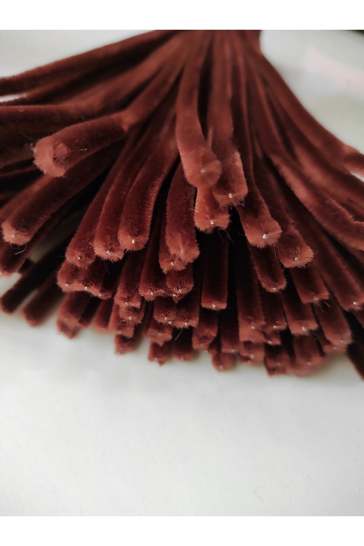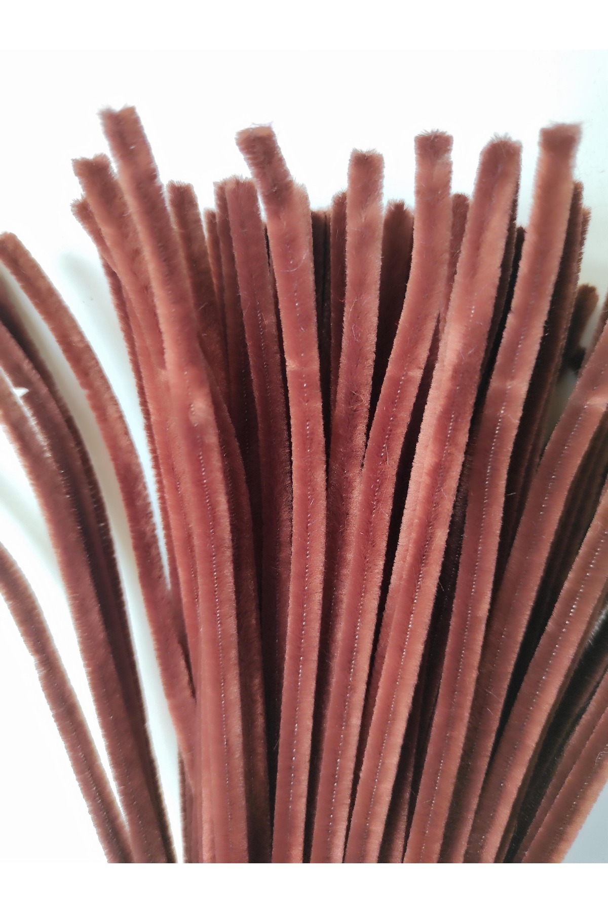 25 Adet Koyu Kahve Şönil, Çiçek Yapımına Uygun Tüylü Tel, 30 Cm 6mm